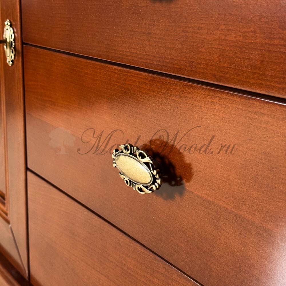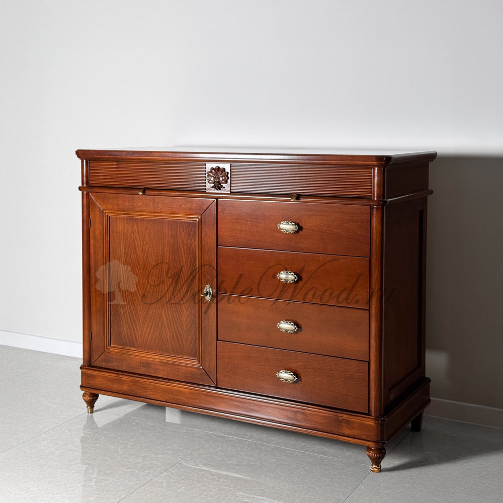Комод из коллекции Бурбон от фабрики Monte Cristo Mobili оборудован шестью выдвижными ящиками и полкой за распашной дверцей, которая надежно закрывается на ключ. Это идеальное место для хранения документов и любых других ценных вещей, требующих ограничения доступа.