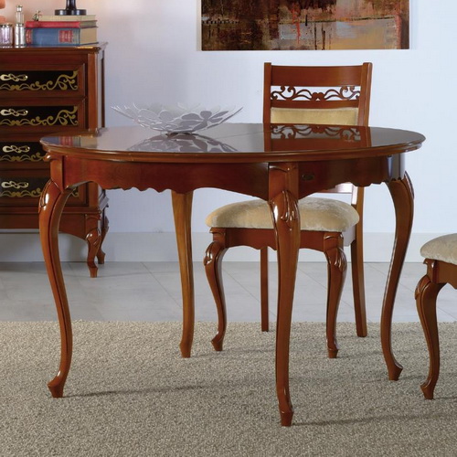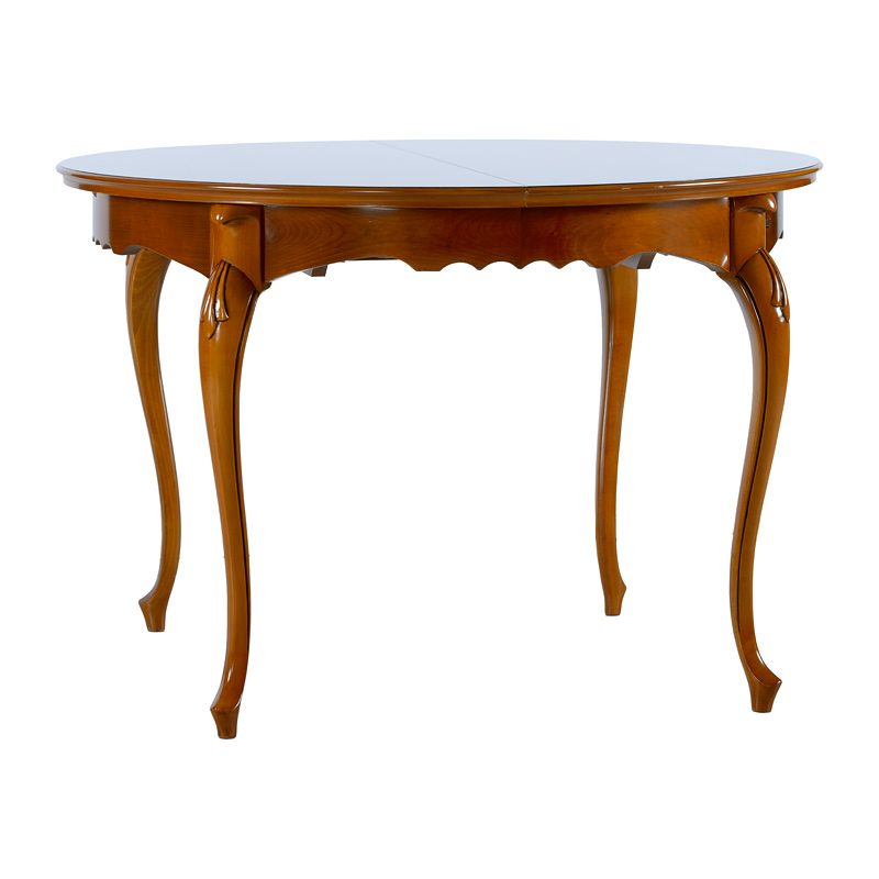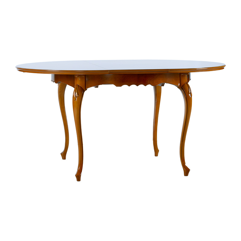 Раскладной обеденный стол на изогнутых ножках из коллекции Маттео от фабрики Mobex выполнен в классическом стиле из натурального массива дерева и может быть исполнен как в темной отделке черешня, так и в светлом оттенке слоновая кость.