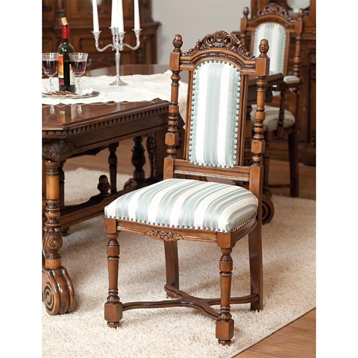 Стул из коллекции Кристина от фабрики Simex выполнен из массива дерева и украшен искусной резьбой, которая подчеркивает классический дизайн изделия, а в качестве обивочного материала предлагается высококачественная ткань или натуральная кожа из каталога производителя.