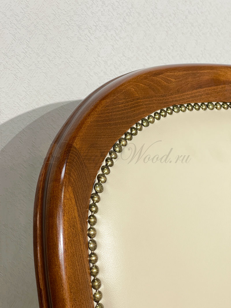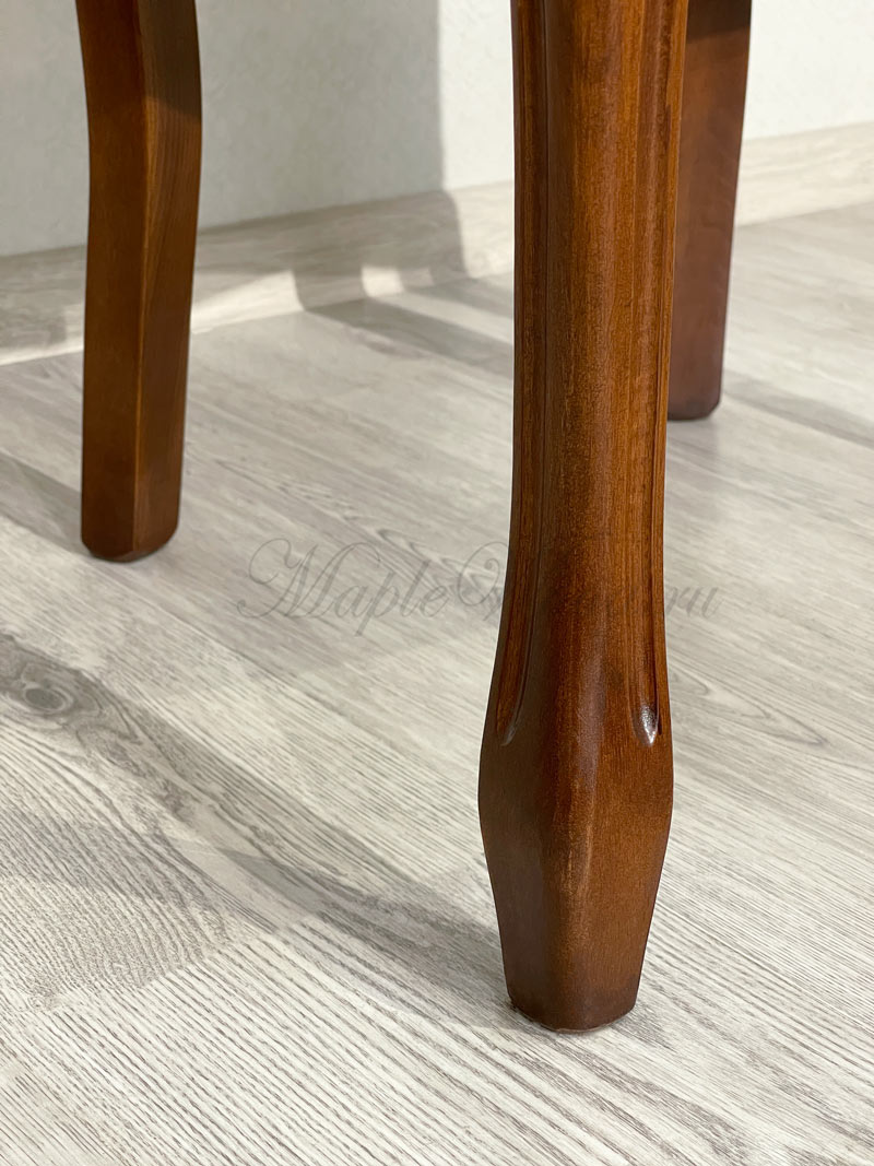 Каркас изделия изготавливается из натурального дерева, а обивка сиденья на объёмном слое наполнителя предоставляется на выбор из каталога фабрики.