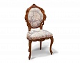 Каркас изделия выполнен из натурального массива дерева и декорирован эффектной резьбой, которая подчеркивает оригинальность дизайна, а цвет и материал обивки предоставляется на выбор из каталога фабрики.