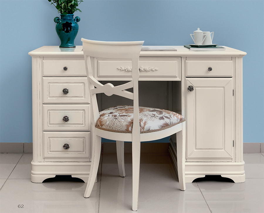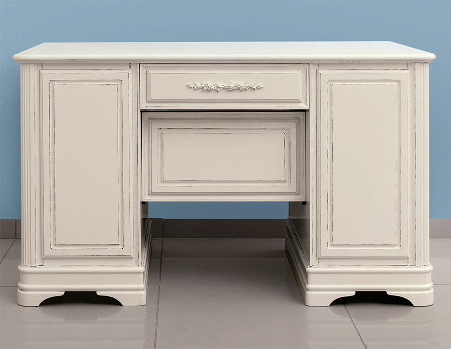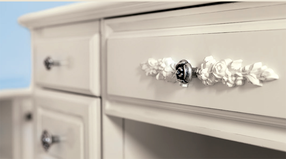 Все элементы набора выполнены в неоклассическом стиле из натурального дерева в светлом оттенке слоновая кость и декорированы контрастной патиной, которая придает изделиям винтажный облик.