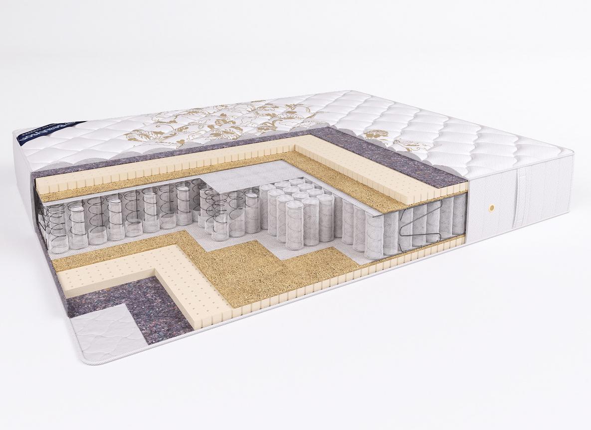 Основными наполнителями матраса являются натуральный латекс и сизаль. Слой натурального латекса, придает изделию мягкость, а слой сизаля служит для правильной поддержки тела во время сна. Чехол матраса выполнен из трикотажа с высокообъемной стежкой, что создает приятные тактильные ощущения при контакте с изделием.