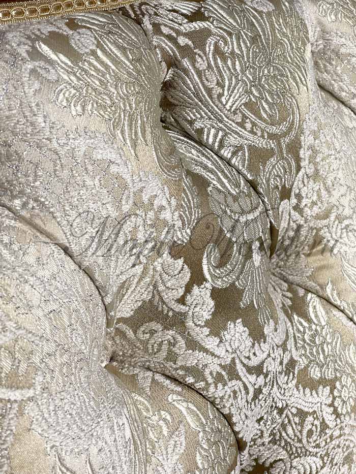 Каркас изделия изготавливается из массива дерева ореха, а в качестве обивочного материала может быть использована натуральная кожа или ткань из каталога производителя.