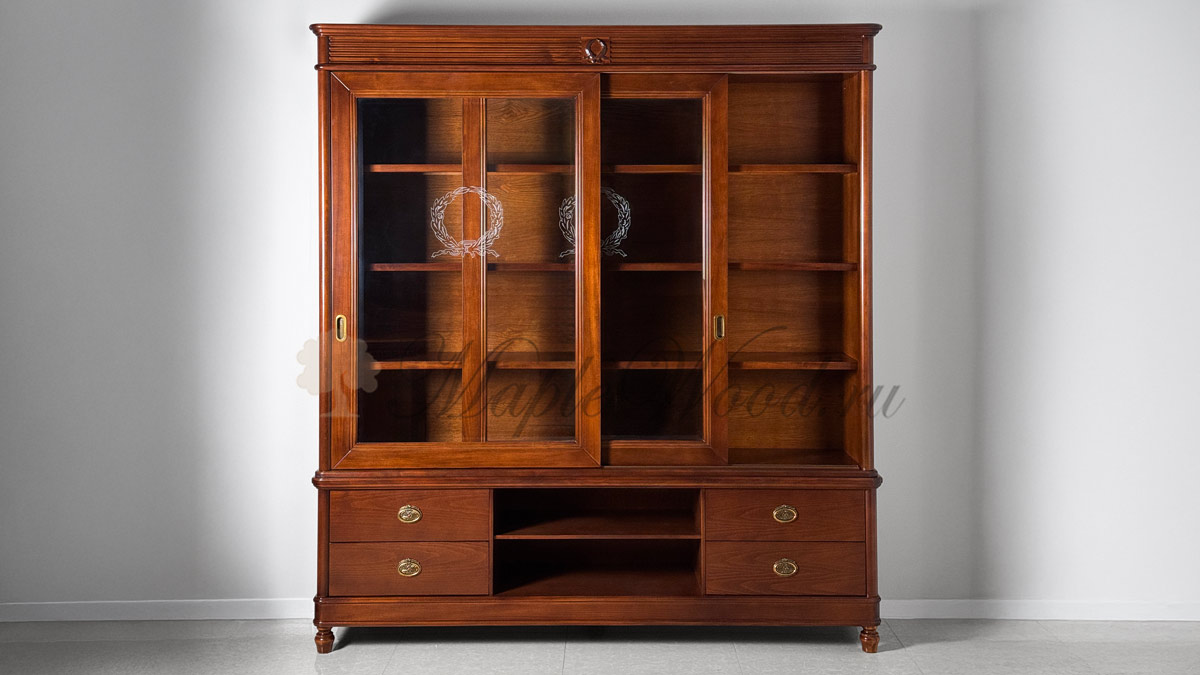 Библиотека выполнена из натурального массива дерева в стандартной отделке «орех»