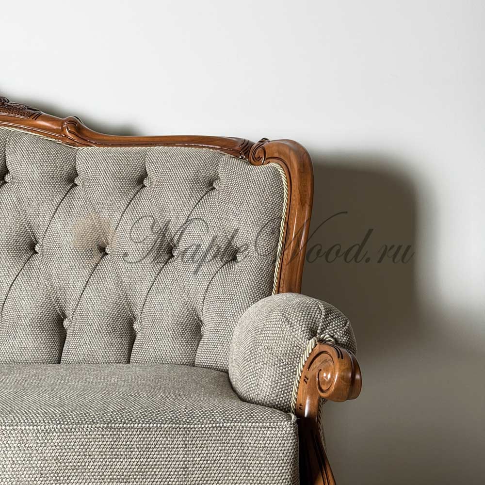 Каркас из массива дерева обеспечивает надежность и долговечность, обивка из рогожки придает дивану текстурный и уютный вид, а также обеспечивает легкость в уходе. Благодаря плотной структуре рогожки, этот диван не только устойчив к износу, но и сохраняет свой первоначальный вид на протяжении многих лет.