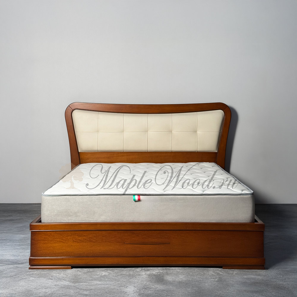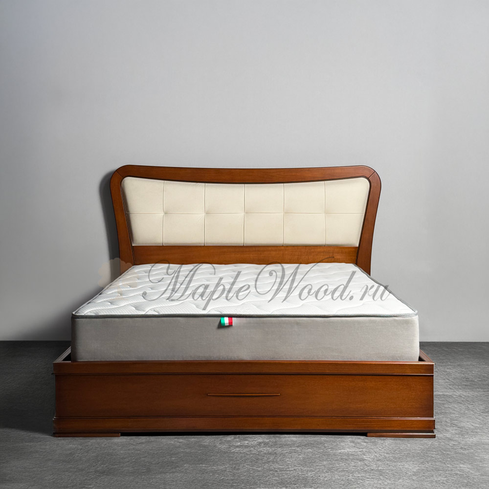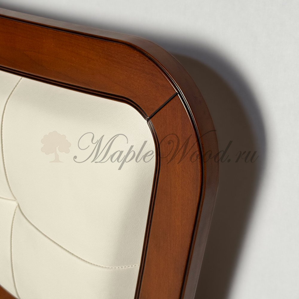 Двуспальная кровать из коллекции Verona от итальянской фабрики Giulia Casa выполнена из массива бука. Фигурное изголовье обито натуральной кожей и декорировано каретной стяжкой, что придает изделию элегантный и утонченный вид.