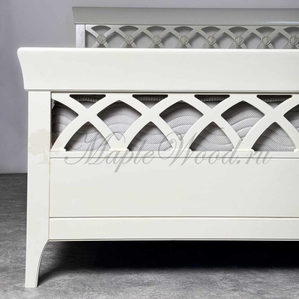 Дополнительно кровать комплектуется ортопедическим основанием и матрасом.