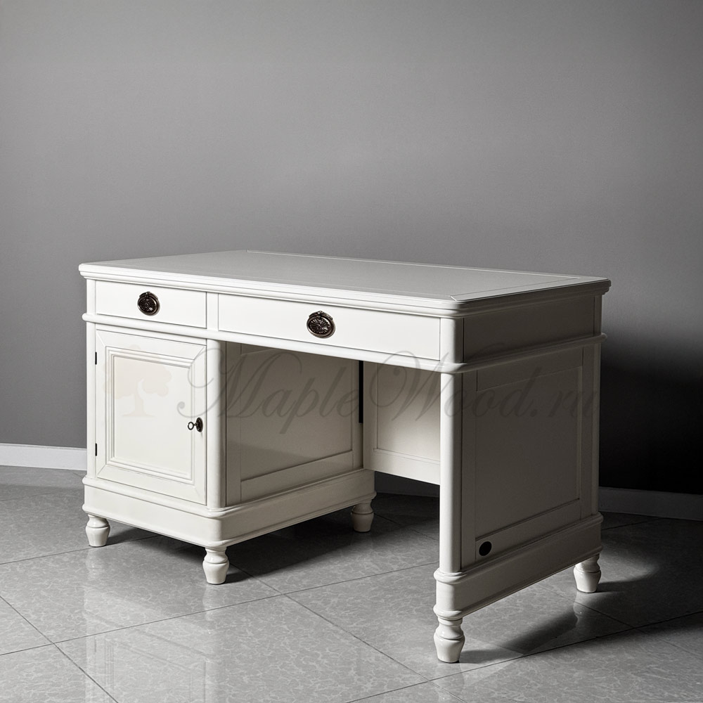 Письменный стол для домашнего кабинета и библиотеки из коллекции Мария Сильва от фабрики Monte Cristo Mobili выполнен в итальянском стиле из натурального массива дерева в светлом оттенке "слоновая кость".
