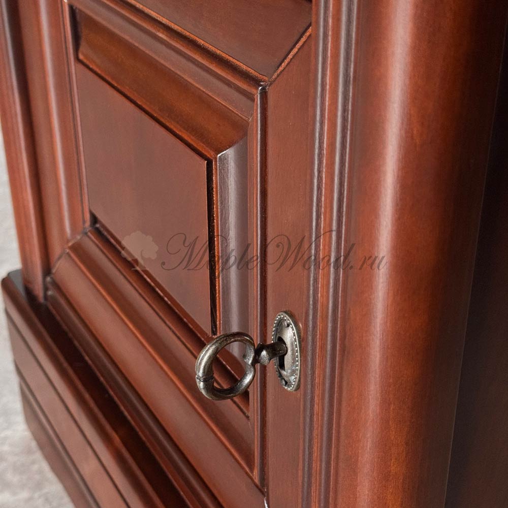 Тумба имеет один выдвижной ящик и отделение за распашной дверцей, которое закрывается на ключ.