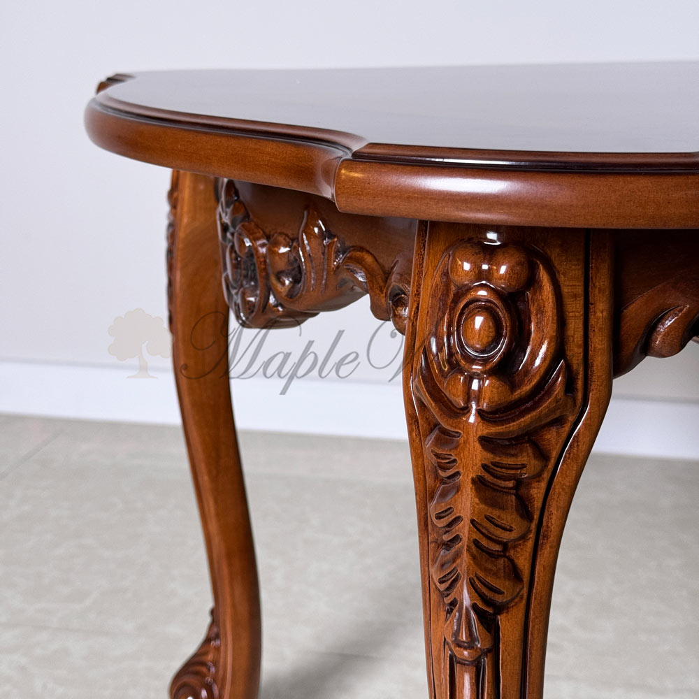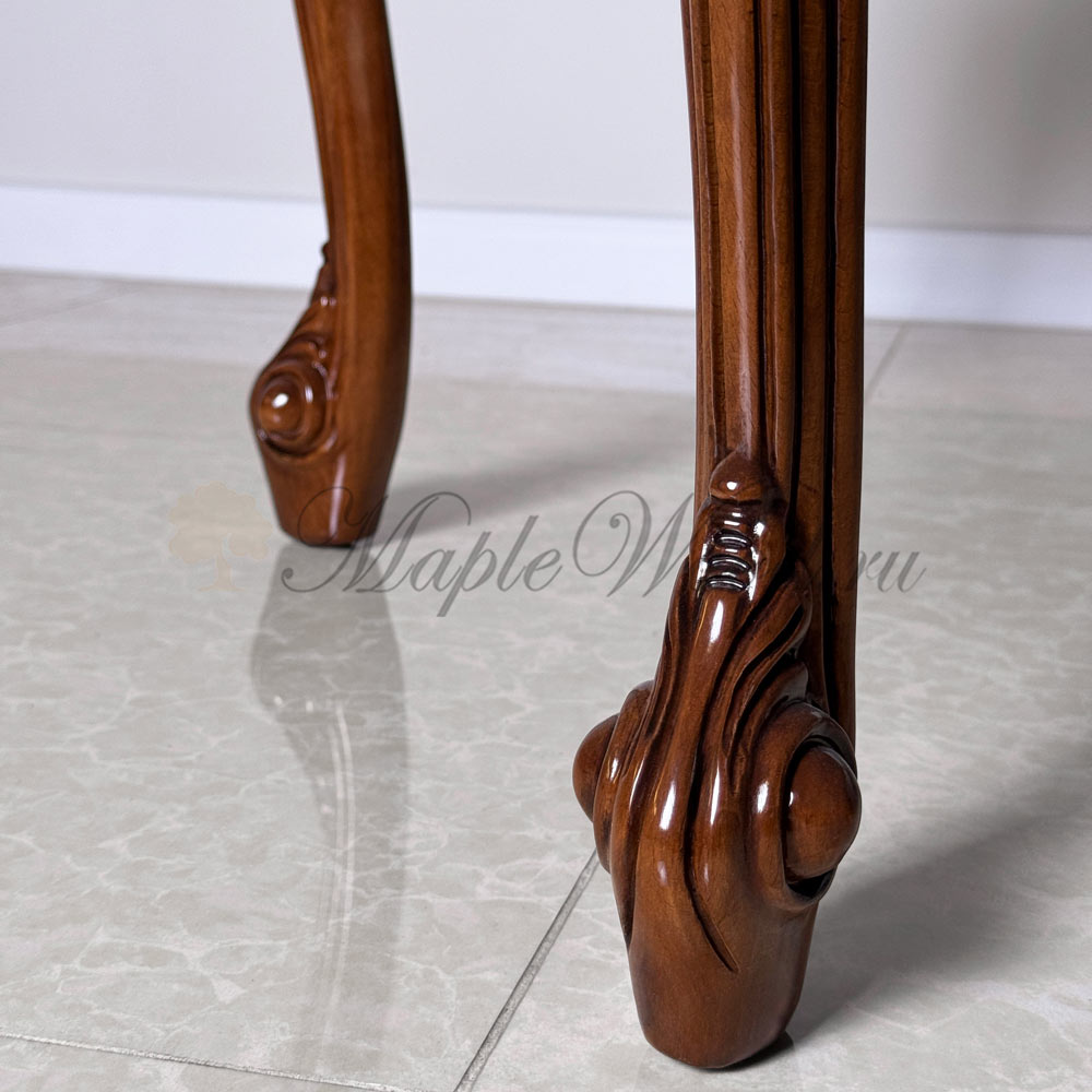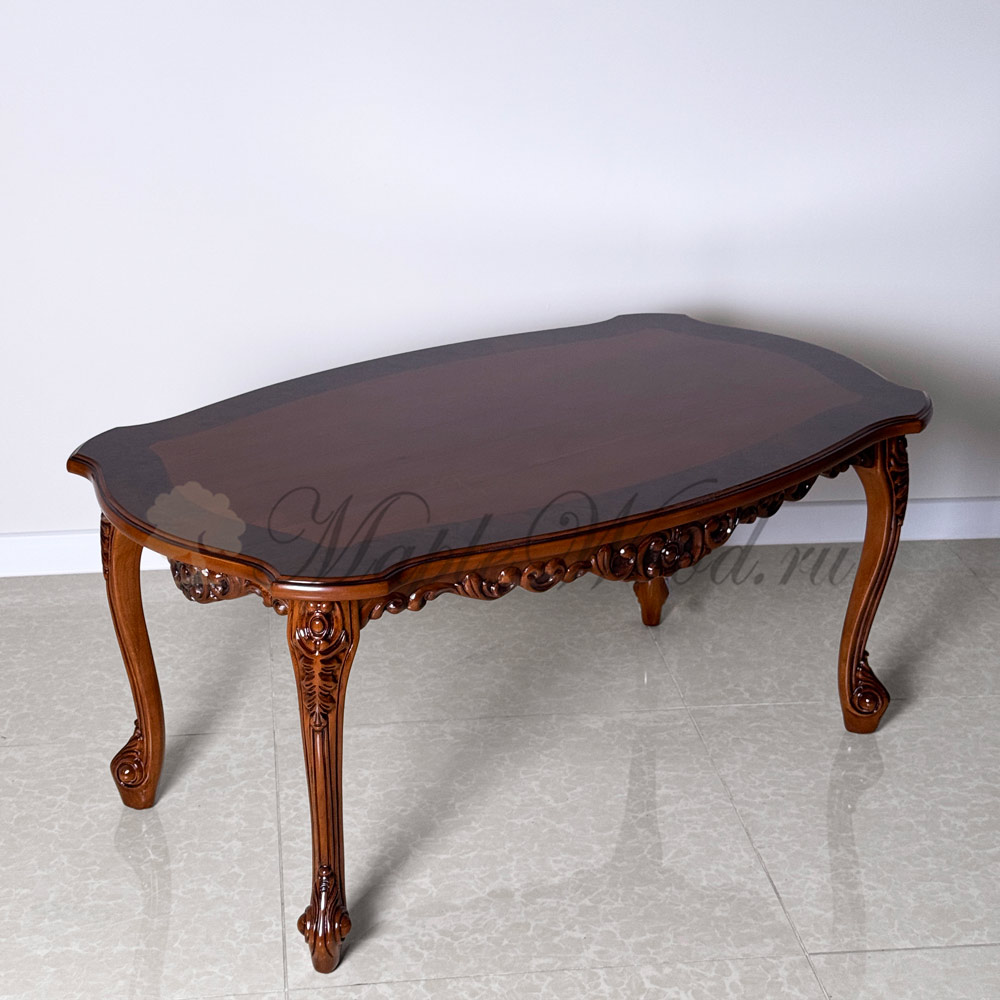 Эффектный журнальный стол для гостиной из коллекции Клеопатра от фабрики Simex выполнен в классическом стиле из благородного массива дерева и декорирован инкрустацией и искусной резьбой.