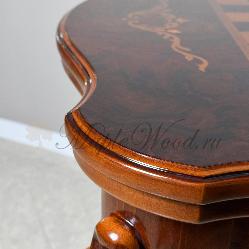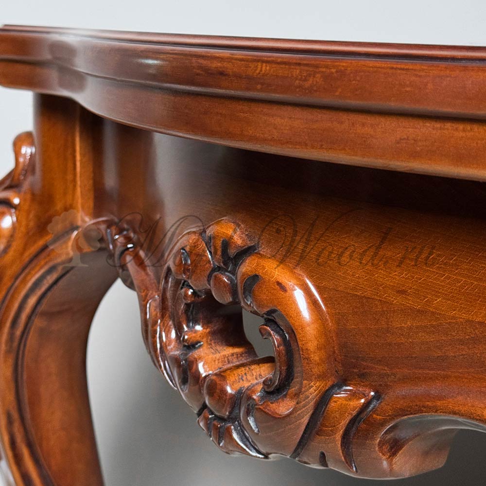 Он сочетает в себе оригинальную форму и богатую отделку с художественной резьбой, которая демонстрирует роскошь стола в каждой детали.