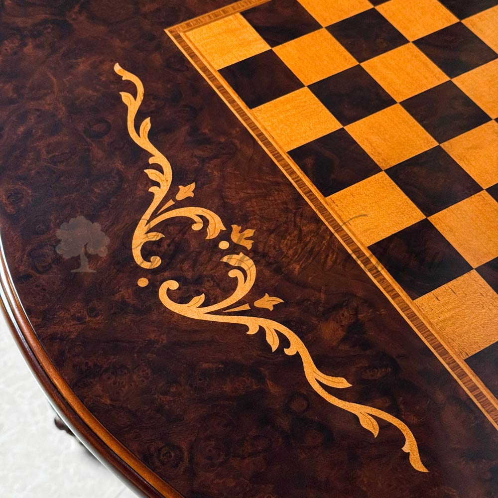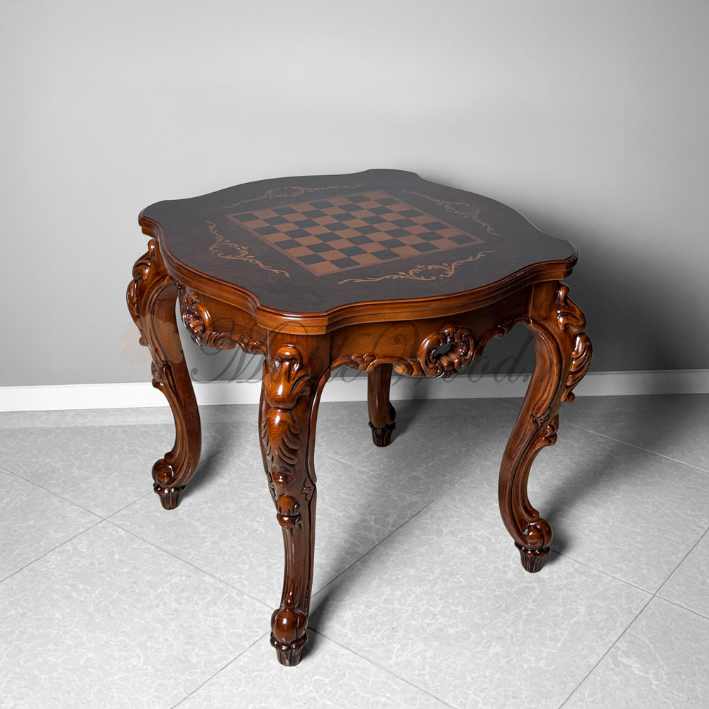 Шахматный стол из коллекции Клеопатра Люкс от фабрики Simex создан из массива дерева в лучших традициях стиля рококо.