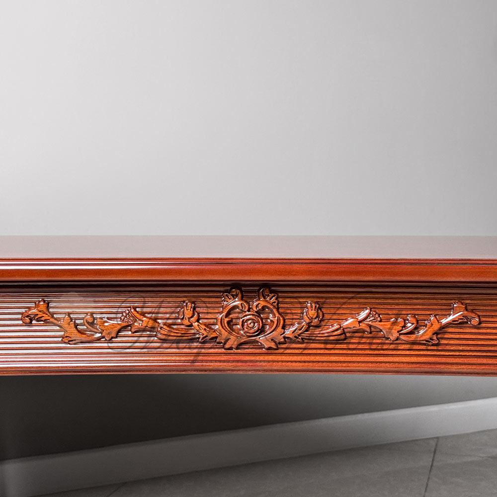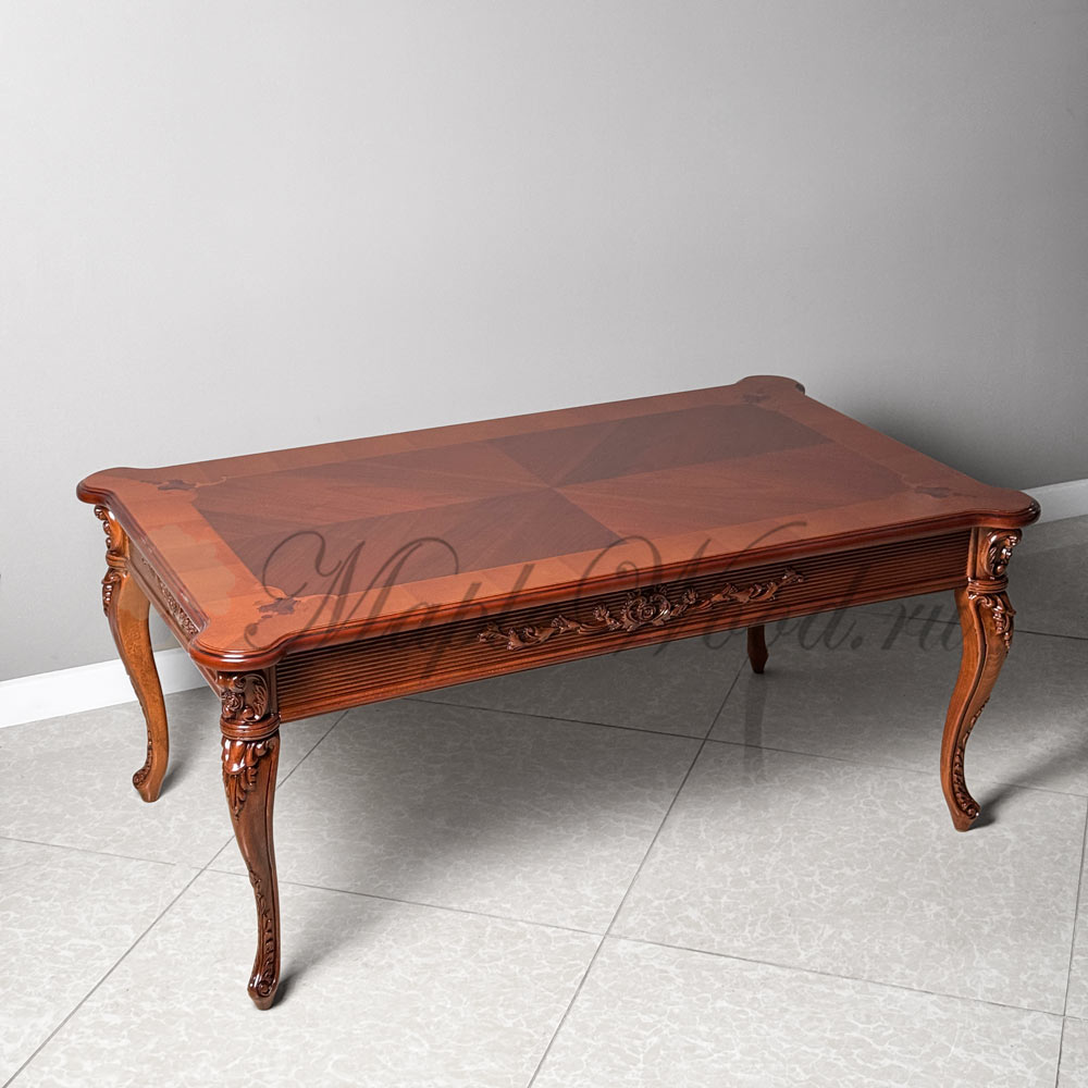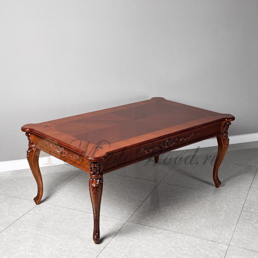 Каркас из массива натурального дерева — основа долговечности и благородства. Особая гордость модели — инкрустация столешницы из шпона, которая создает неповторимый декоративный узор.