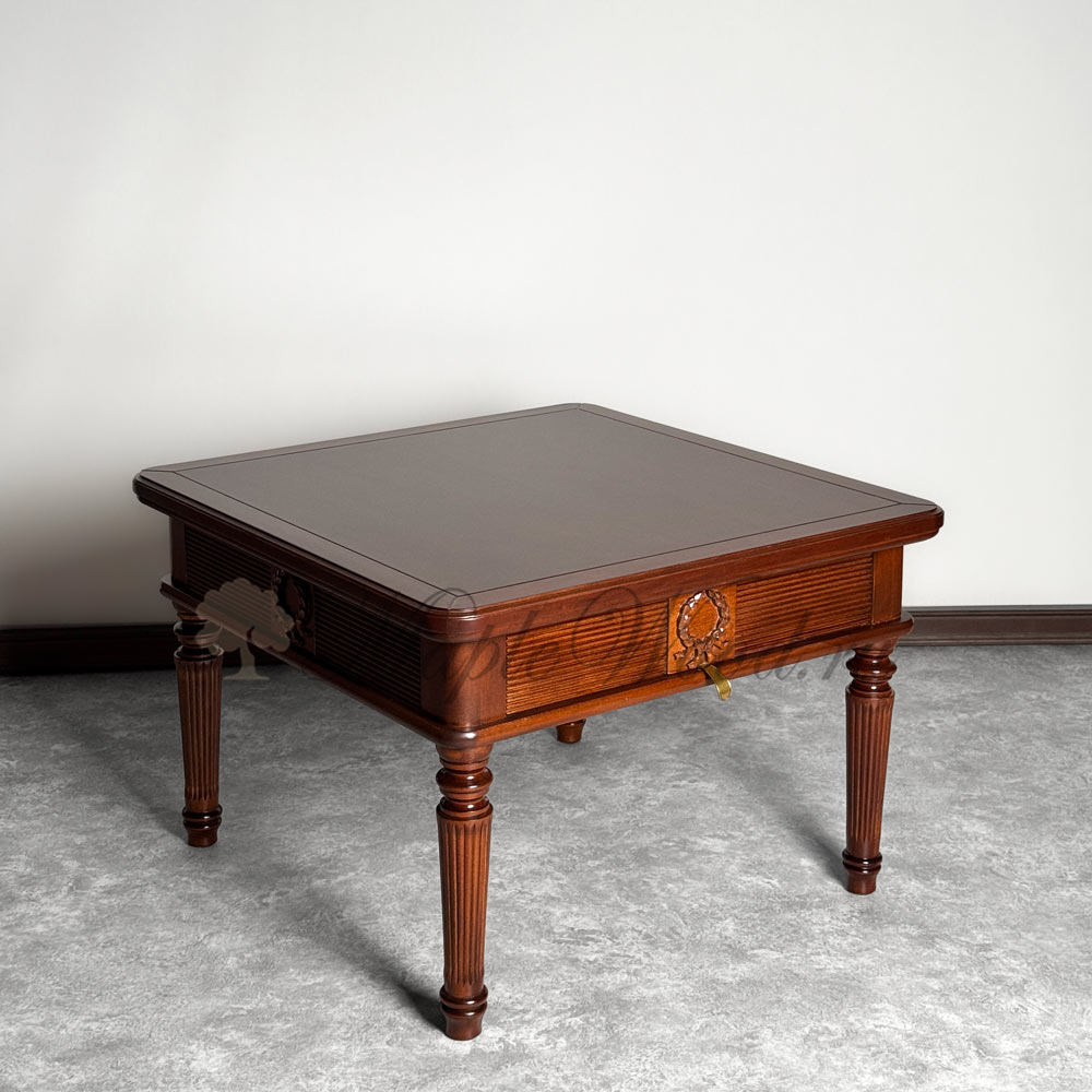 Квадратный столик для гостиной из коллекции Мария Сильва от фабрики Monte Cristo Mobili выполнен из массива дерева в стиле неоклассика.