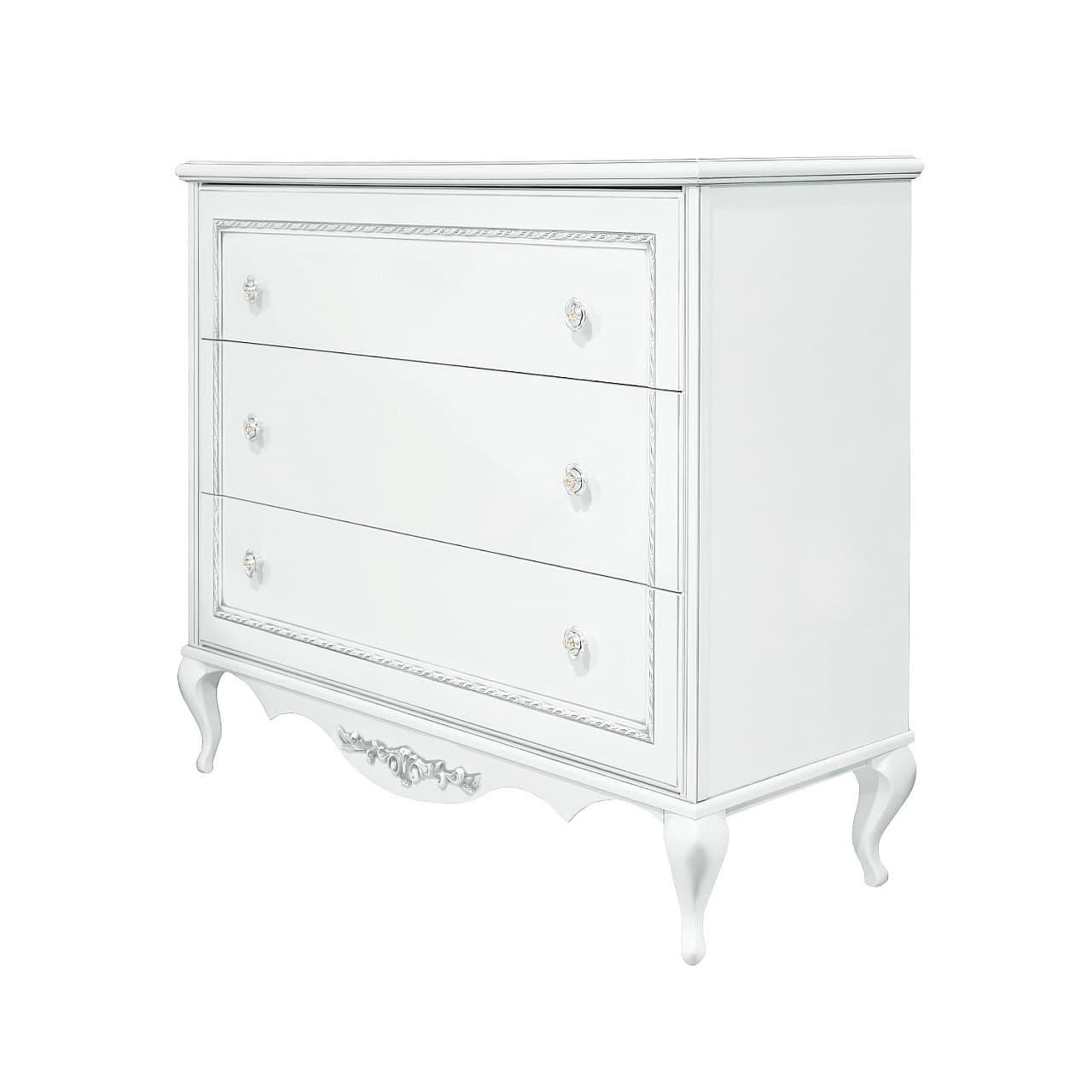 Бельевой комод из коллекции Неаполь от фабрики Тимбер - классическая модель на фигурных ножках, оборудованная тремя вместительными ящиками, которые оснащены системой плавного закрывания.