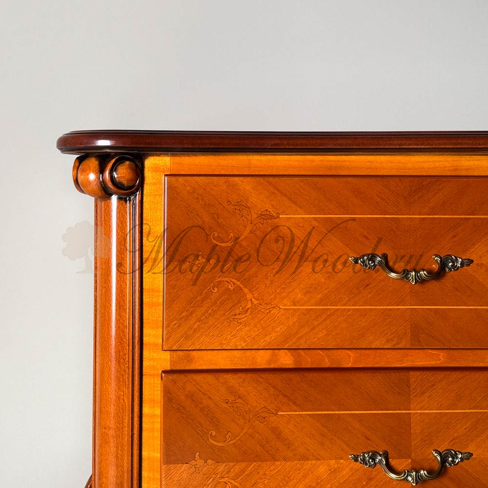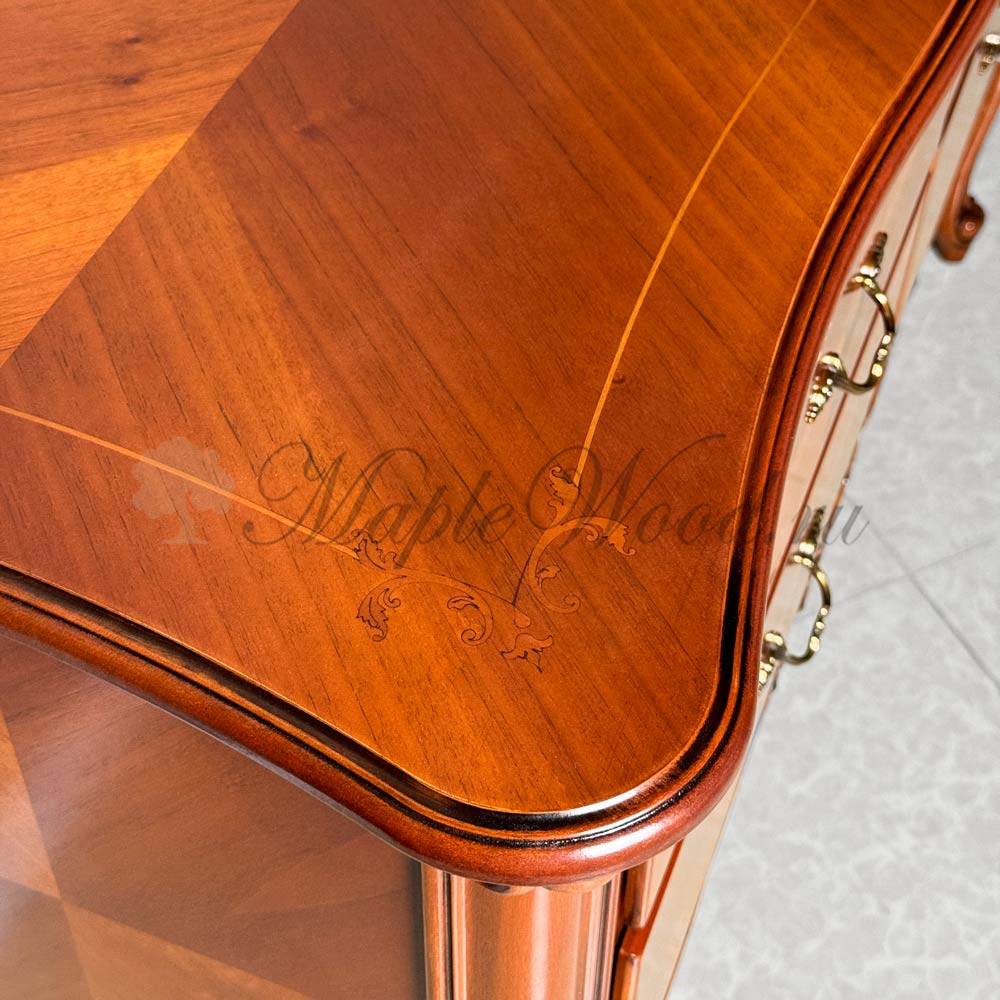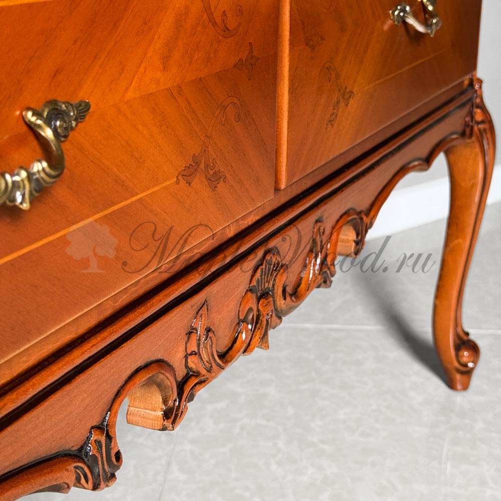 Комод для спальни из коллекции Тарсия от фабрики Ardudana - модель на изогнутых ножках, которая подарит интерьеру лёгкость и аристократичный шарм.