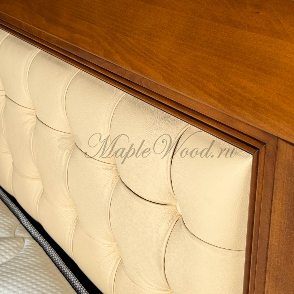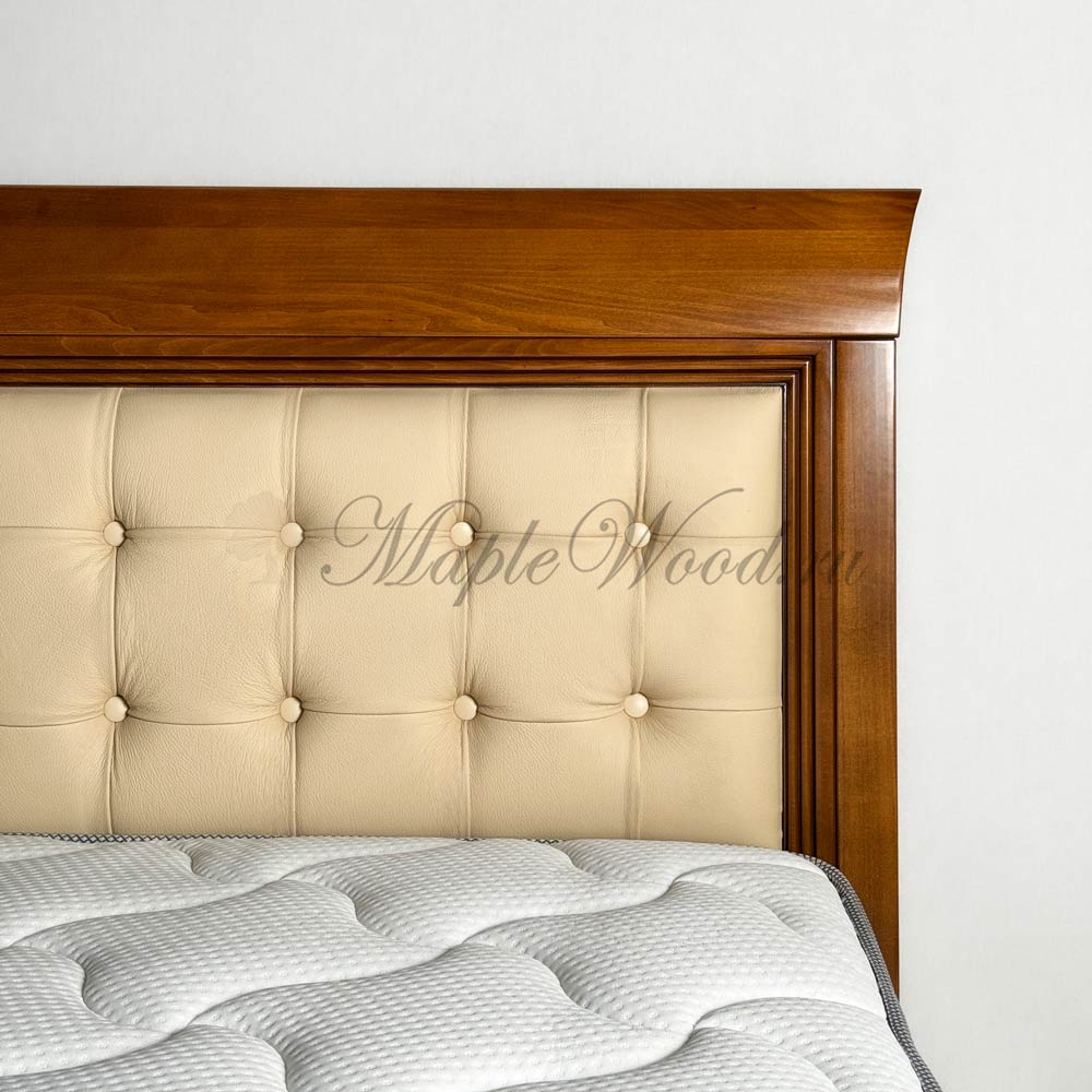 Двуспальная кровать из коллекции Мария Сильва от фабрики Monte Cristo Mobili — это элегантная модель с мягким изголовьем, обитым натуральной кожей, и уникальной фрезеровкой на изножье, которая придаёт изделию особый шарм и оригинальность.