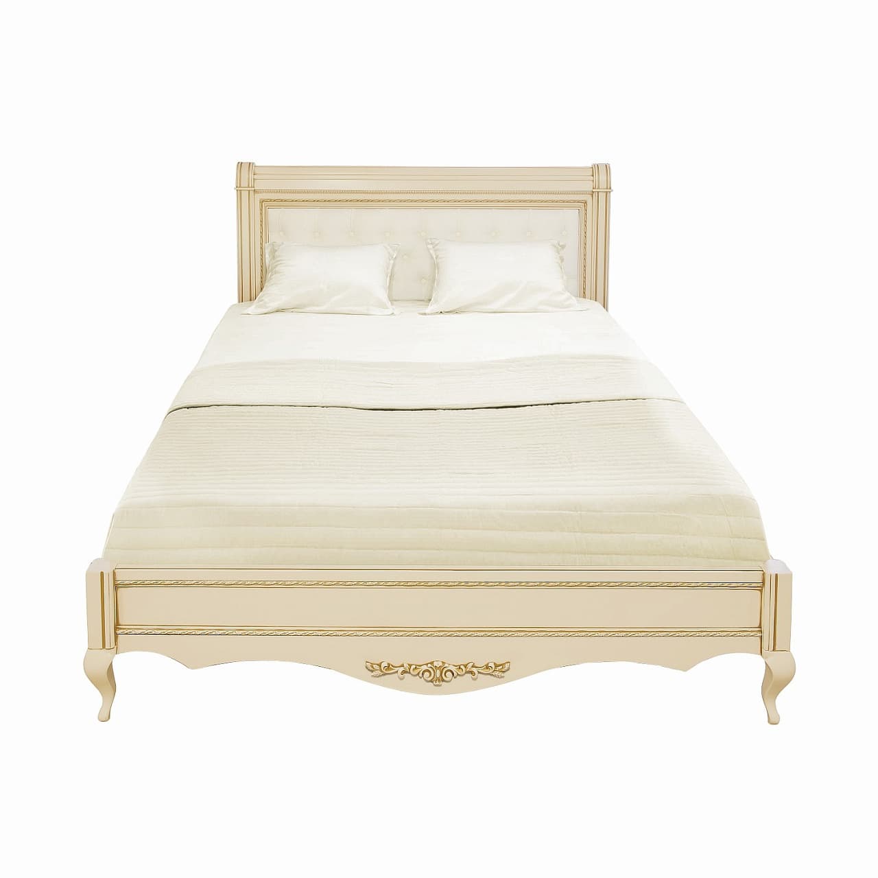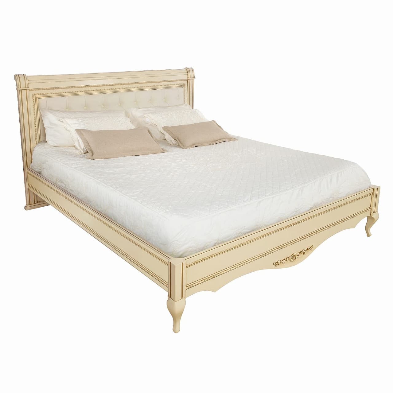 Двуспальная кровать из коллекции Неаполь от фабрики Тимбер - элегантная модель на фигурных ножках, оборудованная мягким изголовьем из экокожи.