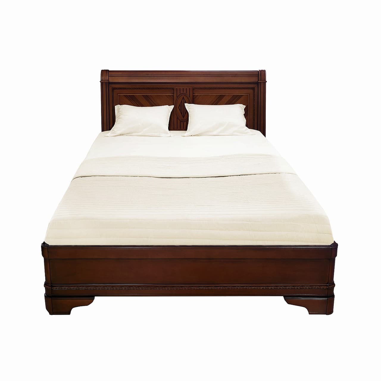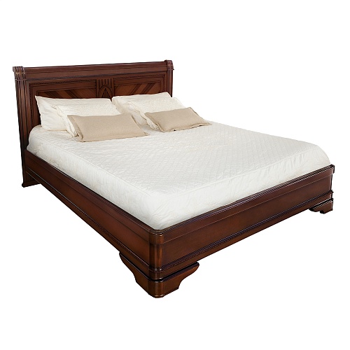 Двуспальная кровать из коллекции Палермо от фабрики Тимбер выполнена в классическом стиле из шпонированного МДФ с элементами из массива дерева и декорирована чёрной патиной, которая подчеркивает акцентные детали изделия.