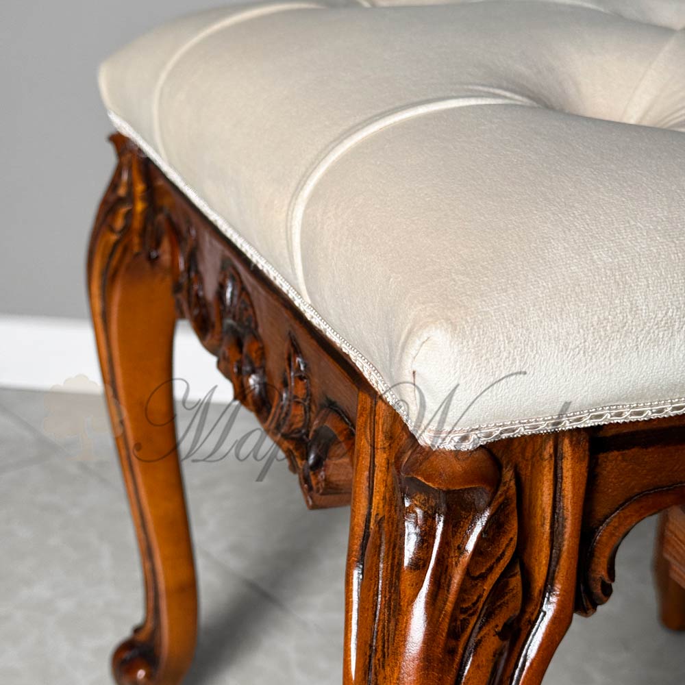 Прочный каркас из массива дерева обеспечивает долговечность, а благородная тканевая обивка завершает образ, делая пуф элегантным акцентом в пространстве.