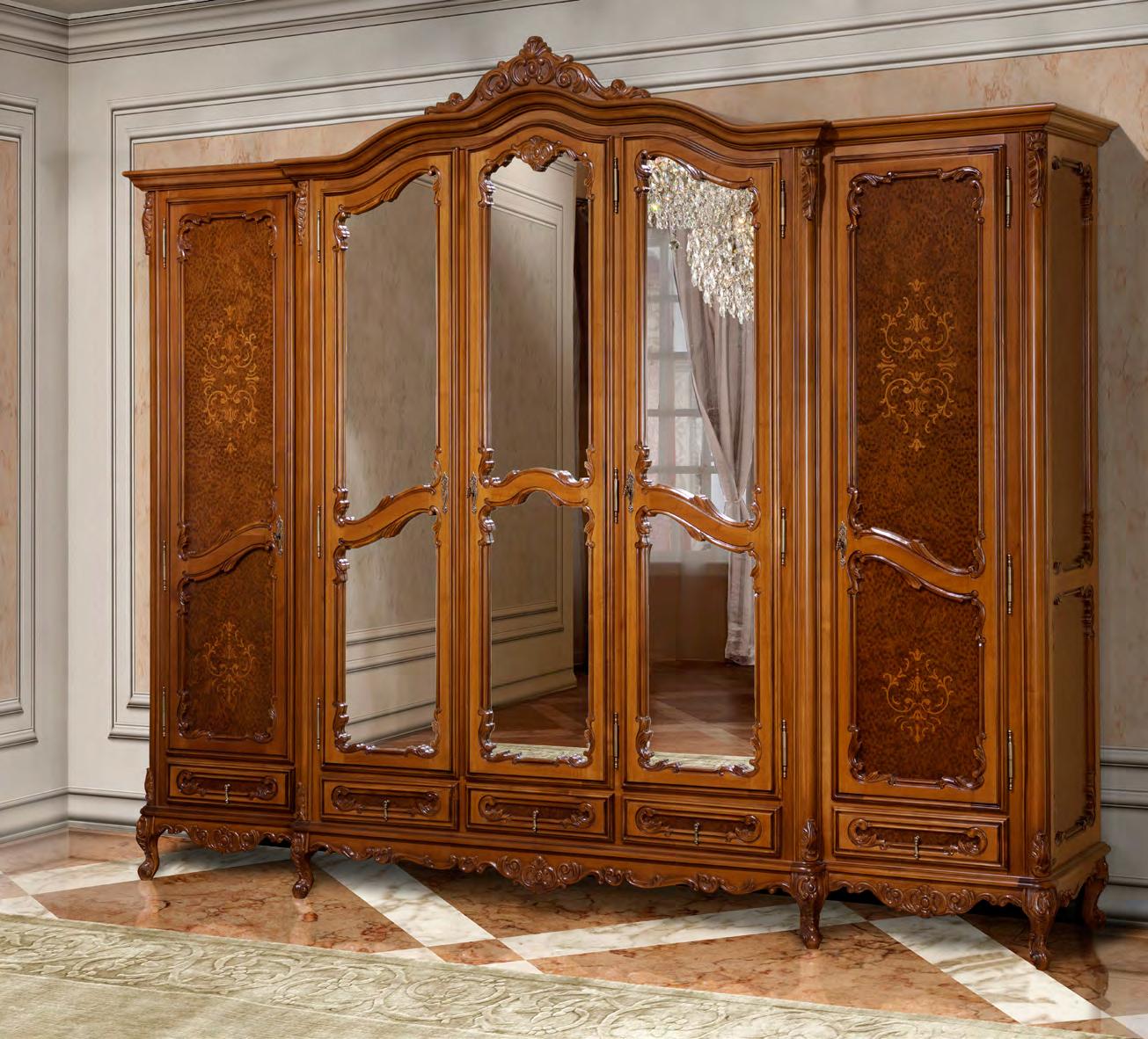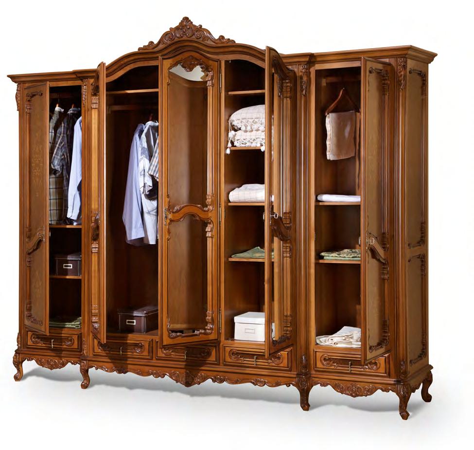 Распашной шкаф выполнен по всем канонам классического стиля из натурального дерева и декорирован искусной резьбой и инкрустацией, которая подчеркивает роскошный внешний вид изделия.