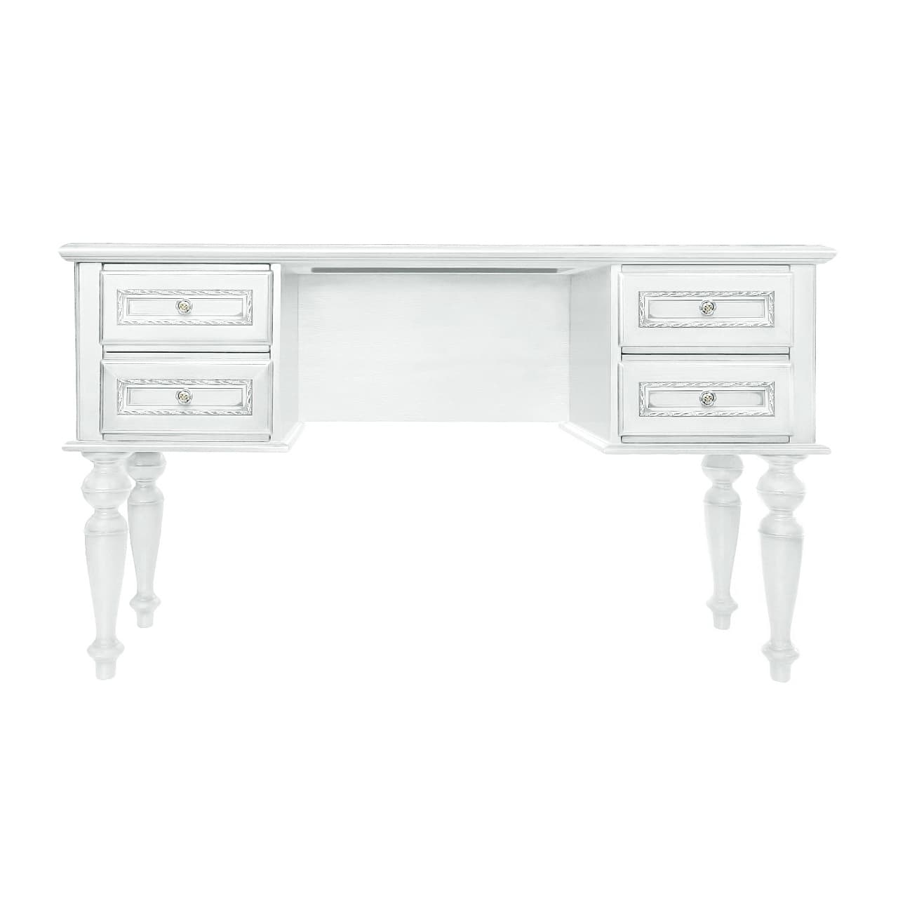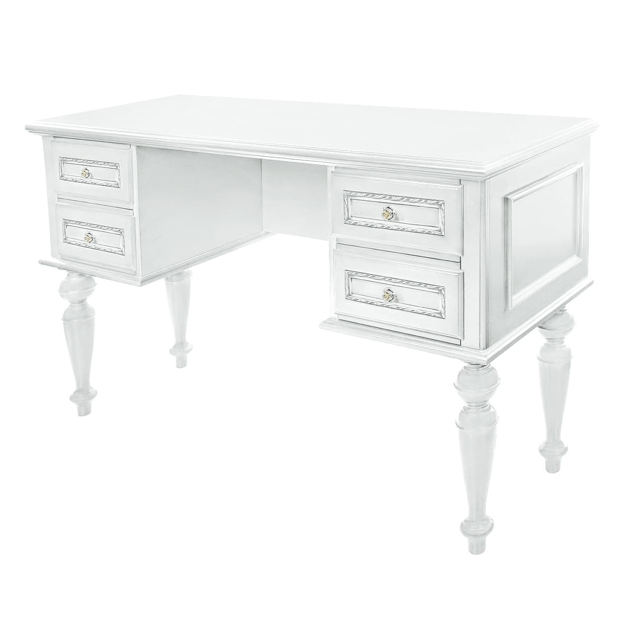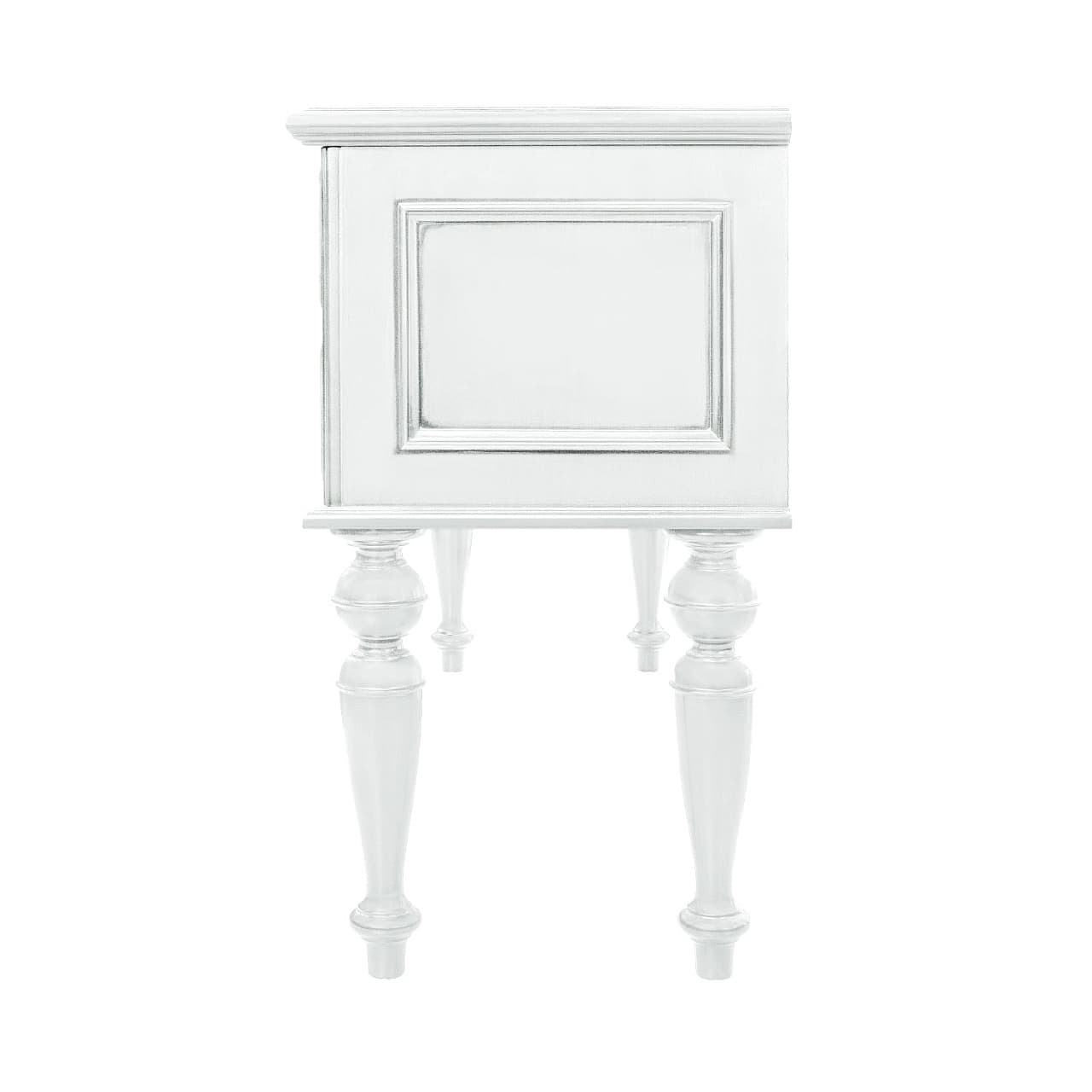 Белый туалетный стол из коллекции Неаполь от фабрики Тимбер выполнен в классическом стиле из шпонированного МДФ с элементами из массива дерева и декорирован контрастной патиной, которая подчеркивает акцентные детали изделия.