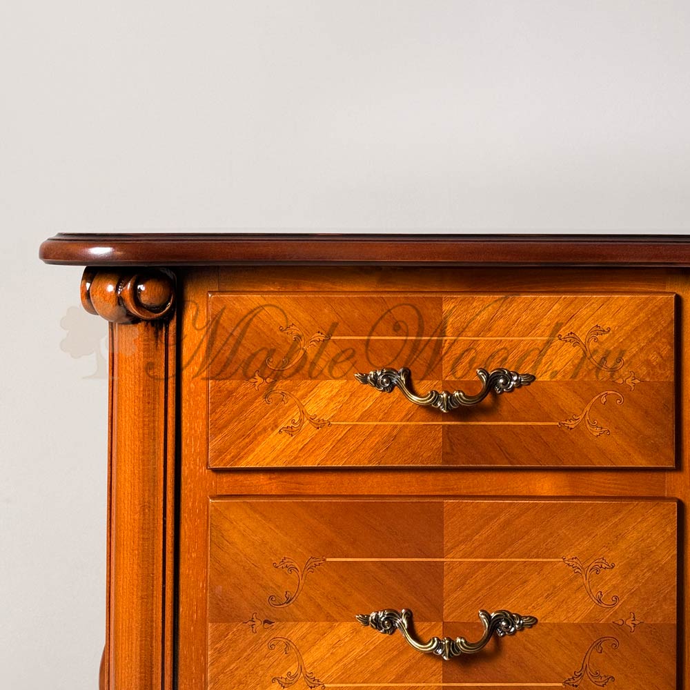 Модель с прочным каркасом из массива дерева оснащена пятью вместительными выдвижными ящиками для хранения.