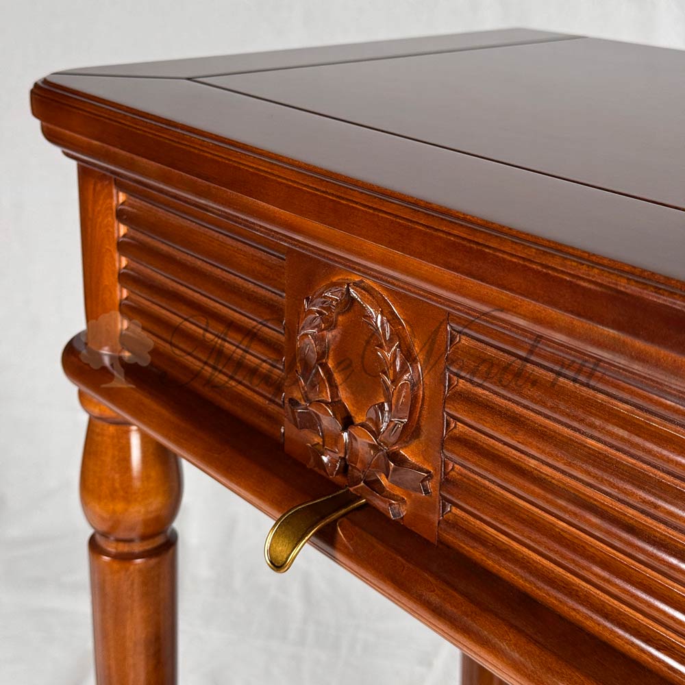 Изделие выполнено в неоклассическом стиле из натурального массива дерева и доступно в различных цветовых вариантах.