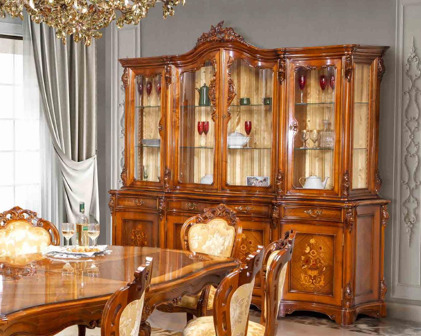 Эффектная 4-х дверная витрина из коллекции Мара Белла от фабрики Simex выполнена по всем канонам классического стиля с использованием натурального дерева и применения уникальной отделки, включая резьбу и инкрустацию ручной работы.