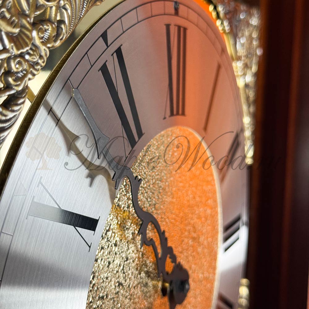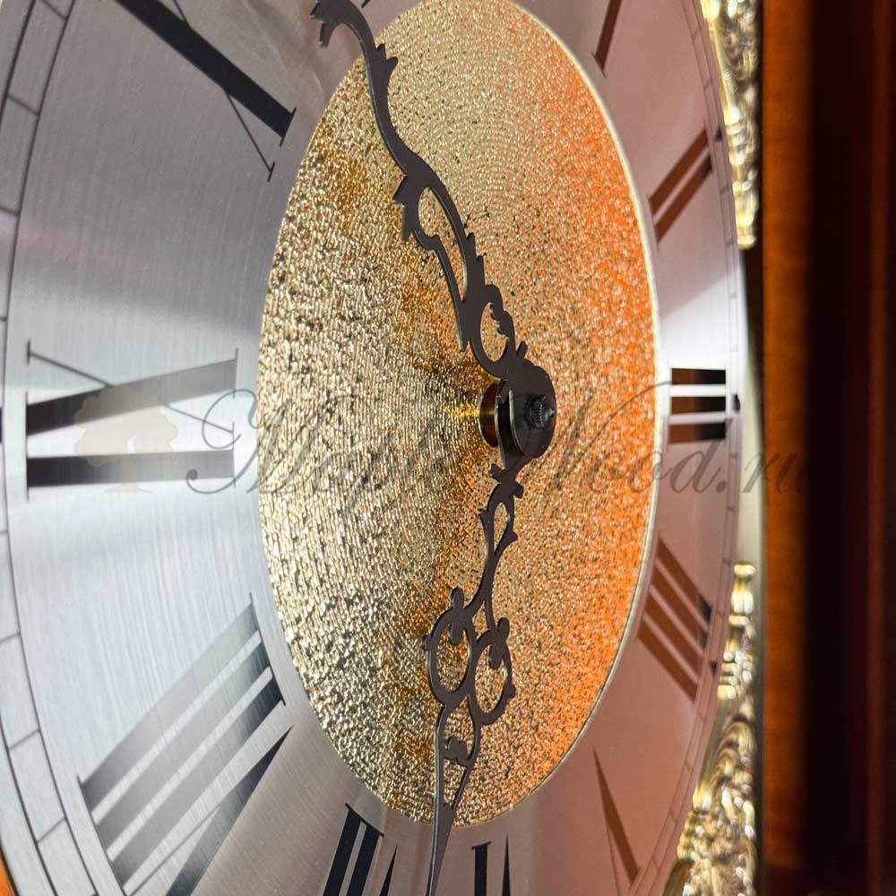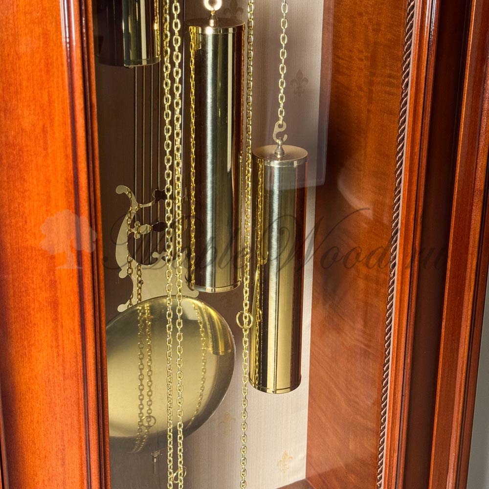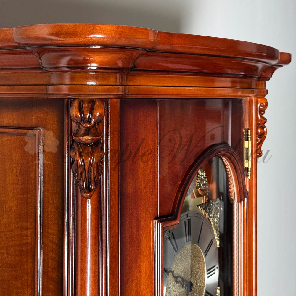Каркас напольных часов выполнен из массива дерева и декорирован эффектной инкрустацией, которая подчеркивает классический дизайн изделия.