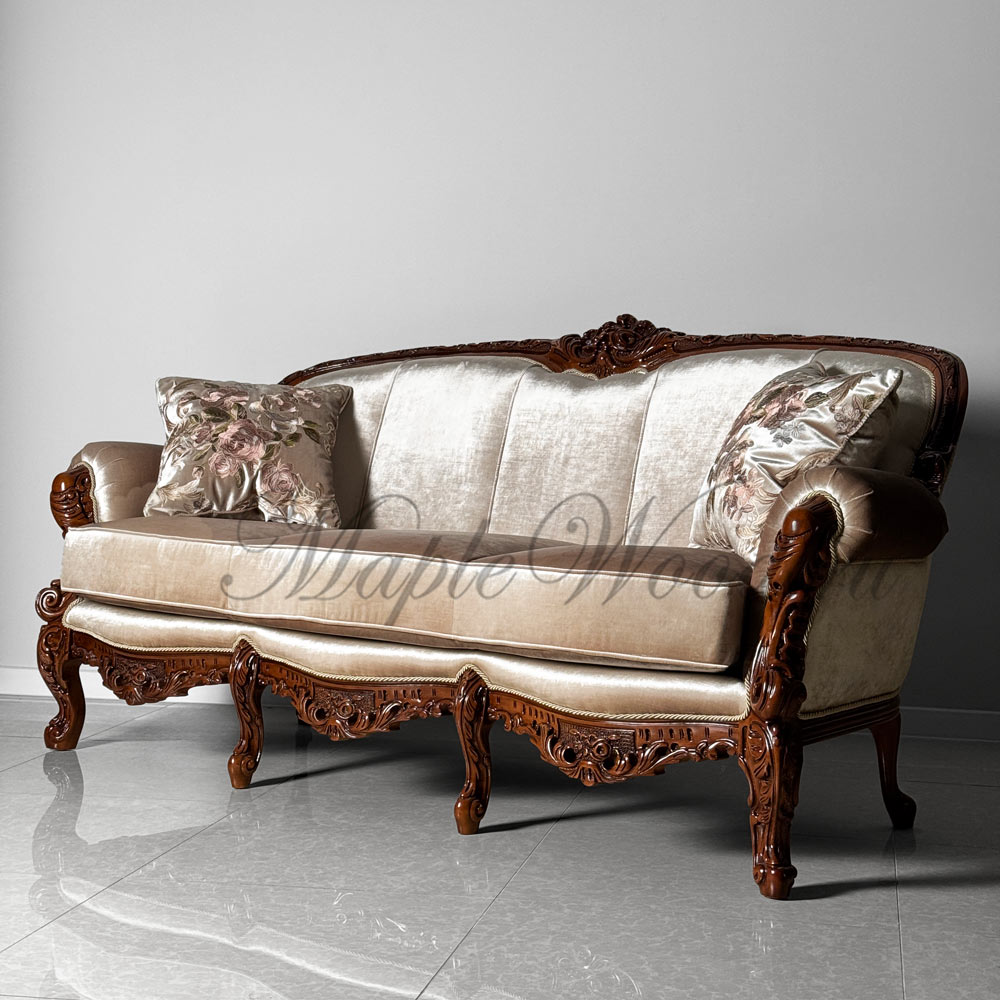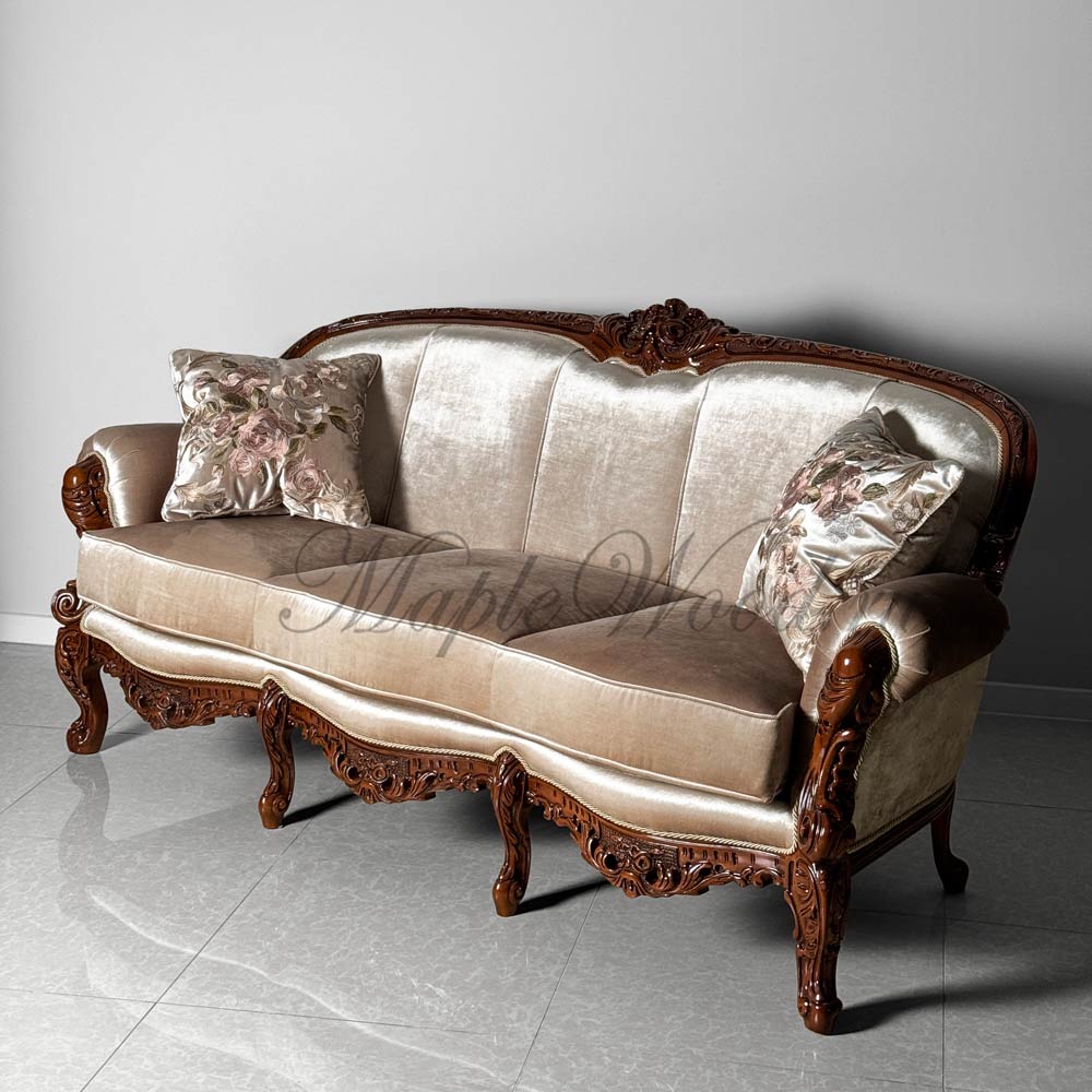 Классический 3-х местный диван с элементами барокко из коллекции Поларес от фабрики Prokess гармонично дополнит элегантный интерьер гостиной и подчеркнет шарм создаваемого облика.