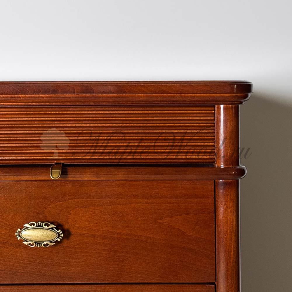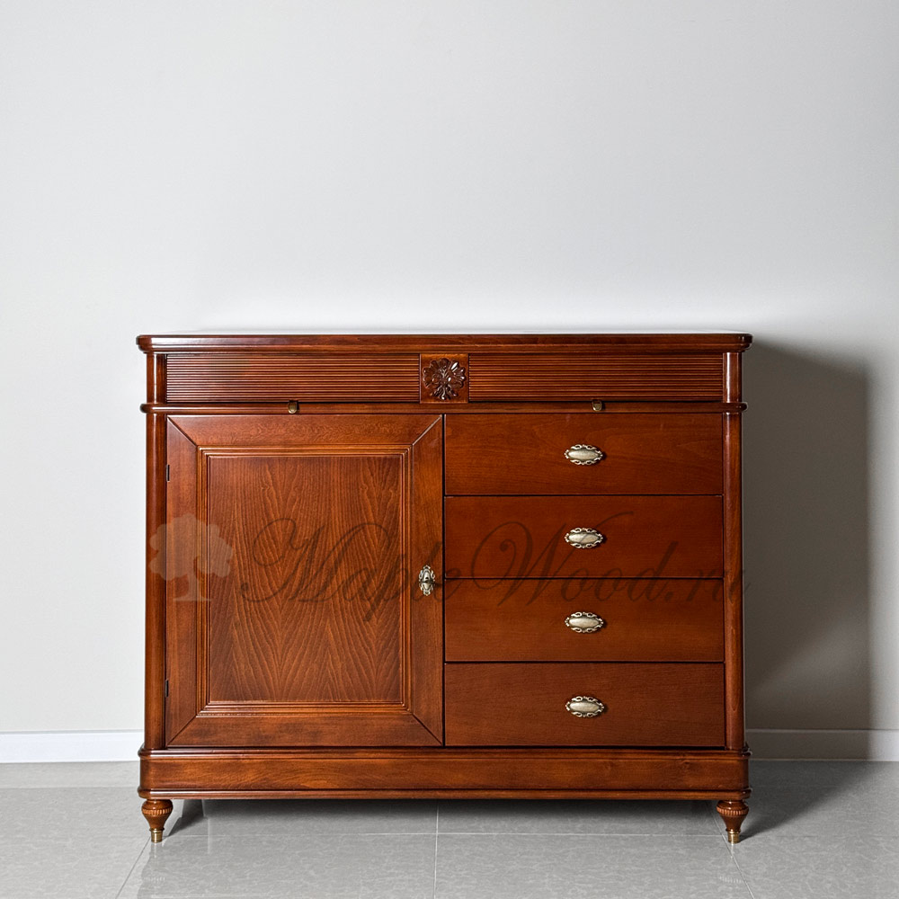 Комод из коллекции Бурбон от фабрики Monte Cristo Mobili оборудован шестью выдвижными ящиками и полкой за распашной дверцей, которая надежно закрывается на ключ. Это идеальное место для хранения документов и любых других ценных вещей, требующих ограничения доступа.