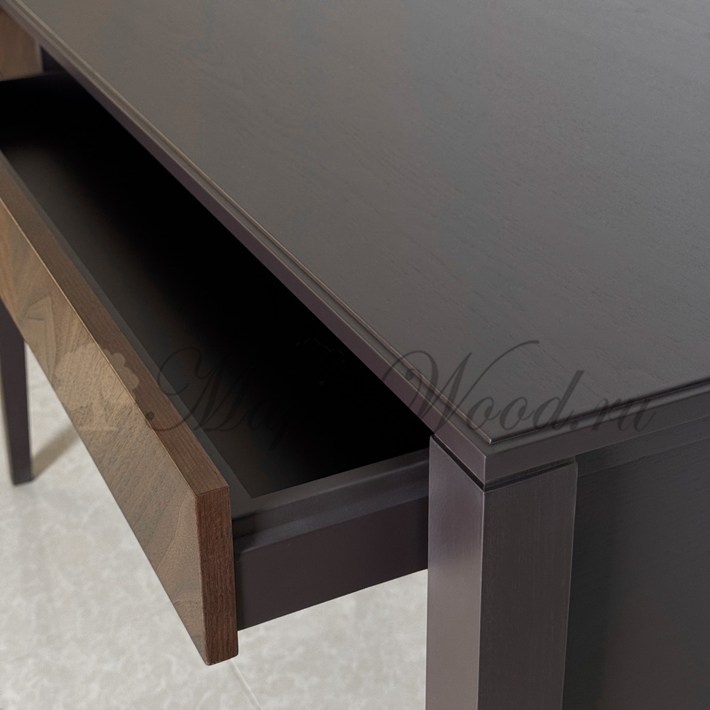 Фасады ящиков декорированы натуральным шпоном дерева, что придаёт изделию оригинальный и стильный вид.