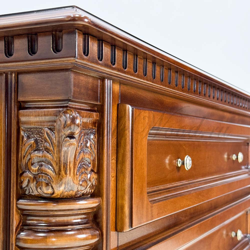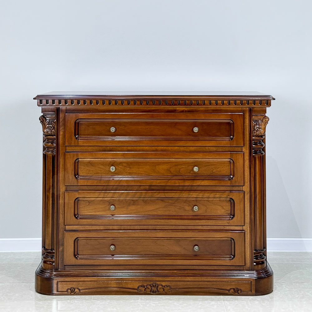 Комод для белья и одежды из коллекции Кристина от фабрики Simex создан в лучших традиция классического стиля, сочетая в себе натуральный массив дерева и богатую отделку ручной работы, которая демонстрирует роскошь изделия в каждой детали.