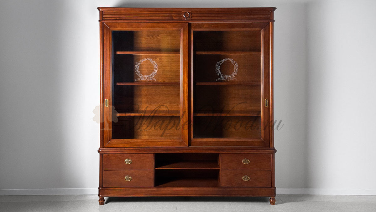 Библиотека выполнена из натурального массива дерева в стандартной отделке «орех»