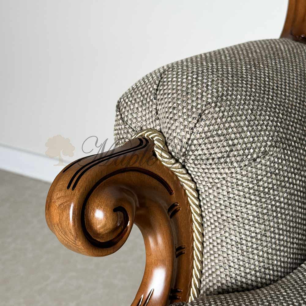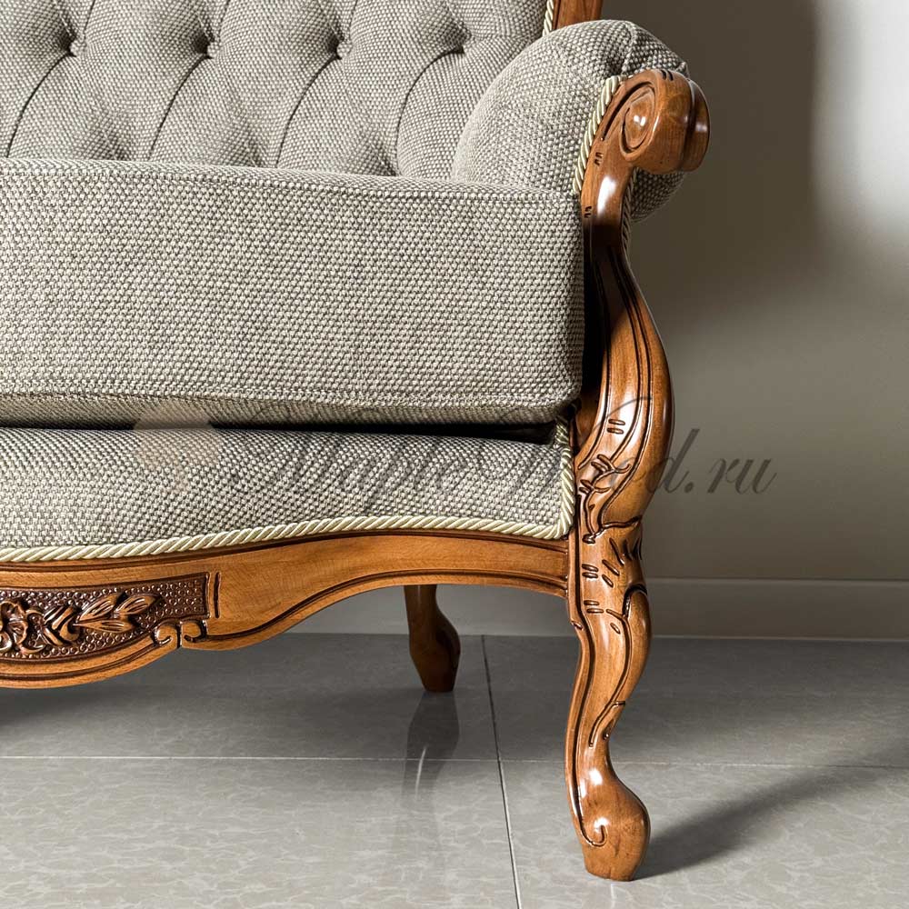 Каркас из массива дерева обеспечивает надежность и долговечность, обивка из рогожки придает дивану текстурный и уютный вид, а также обеспечивает легкость в уходе. Благодаря плотной структуре рогожки, этот диван не только устойчив к износу, но и сохраняет свой первоначальный вид на протяжении многих лет.