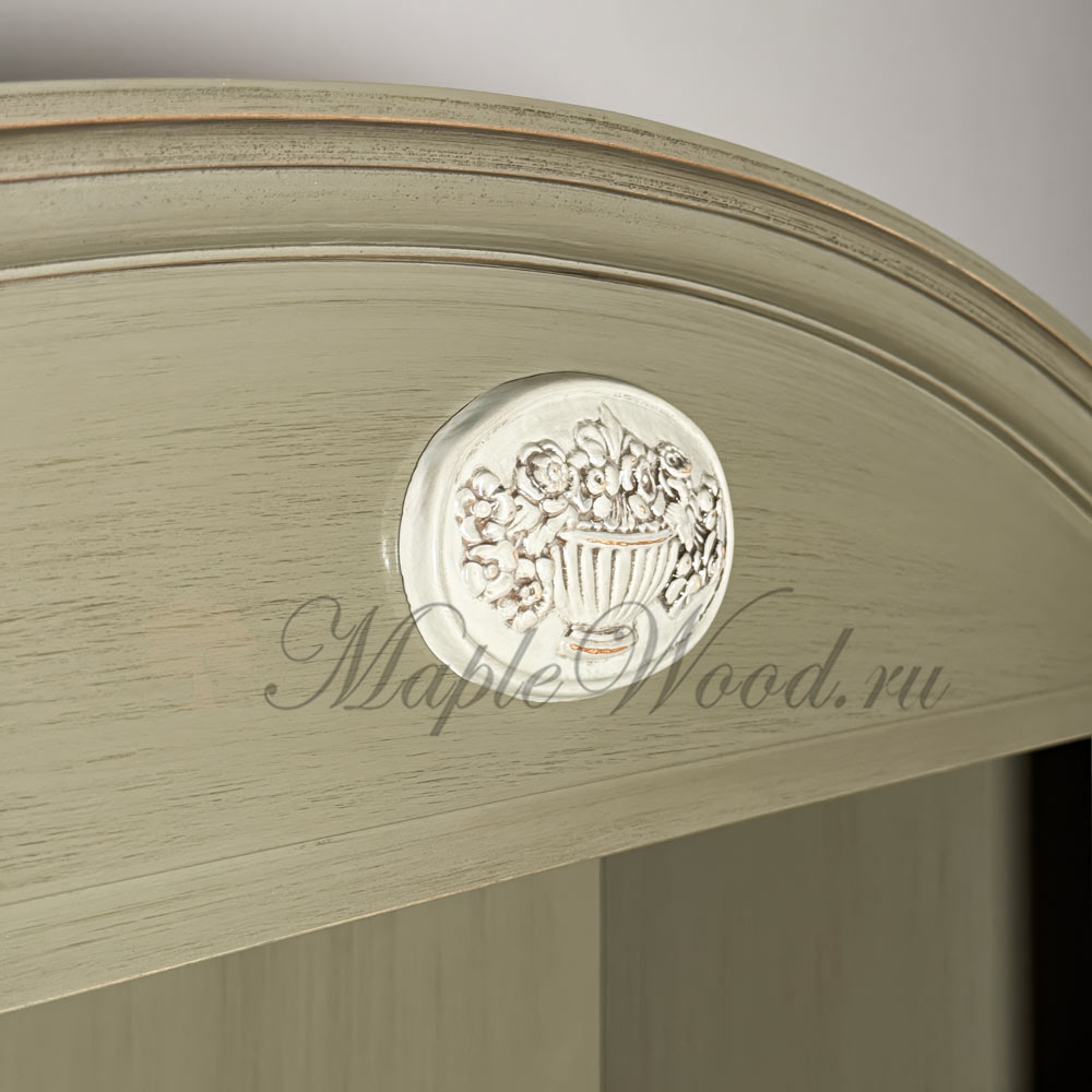Этажерка для гостиной из коллекции «Артемида» от фабрики Monte Cristo Mobili выполнена в неоклассическом стиле из массива дерева в нестандартном оливковом оттенке.