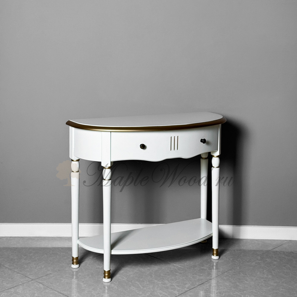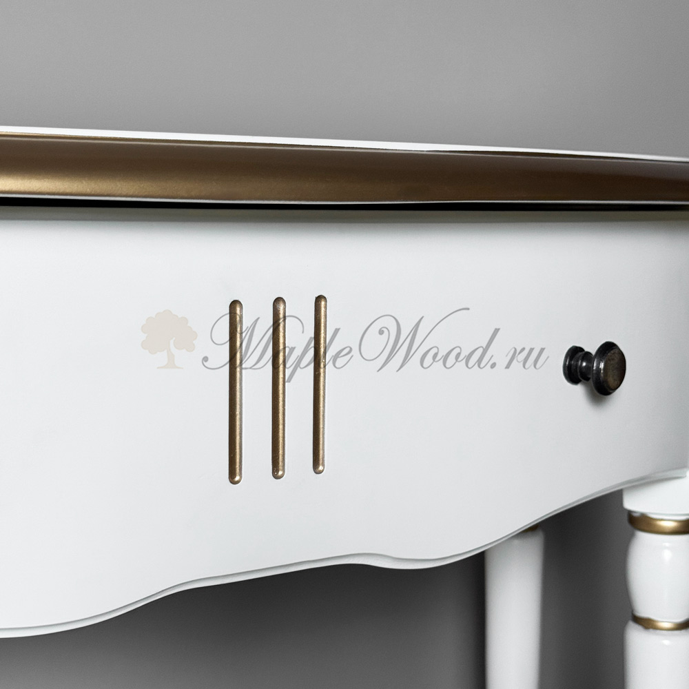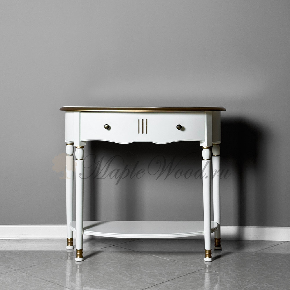 Консоль из коллекции Элеганс от фабрики Мобекс | Mobex выполнена из массива дерева в белом оттенке, сочетая в себе элегантную форму и сдержанный стиль классики.