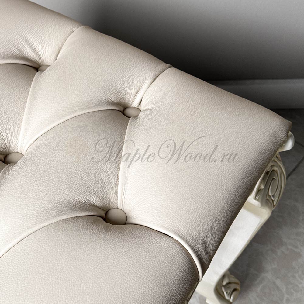 В качестве обивочного материала использована натуральная кожа в бежевом оттенке.