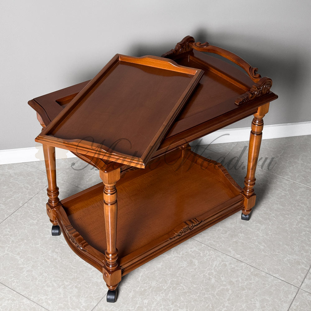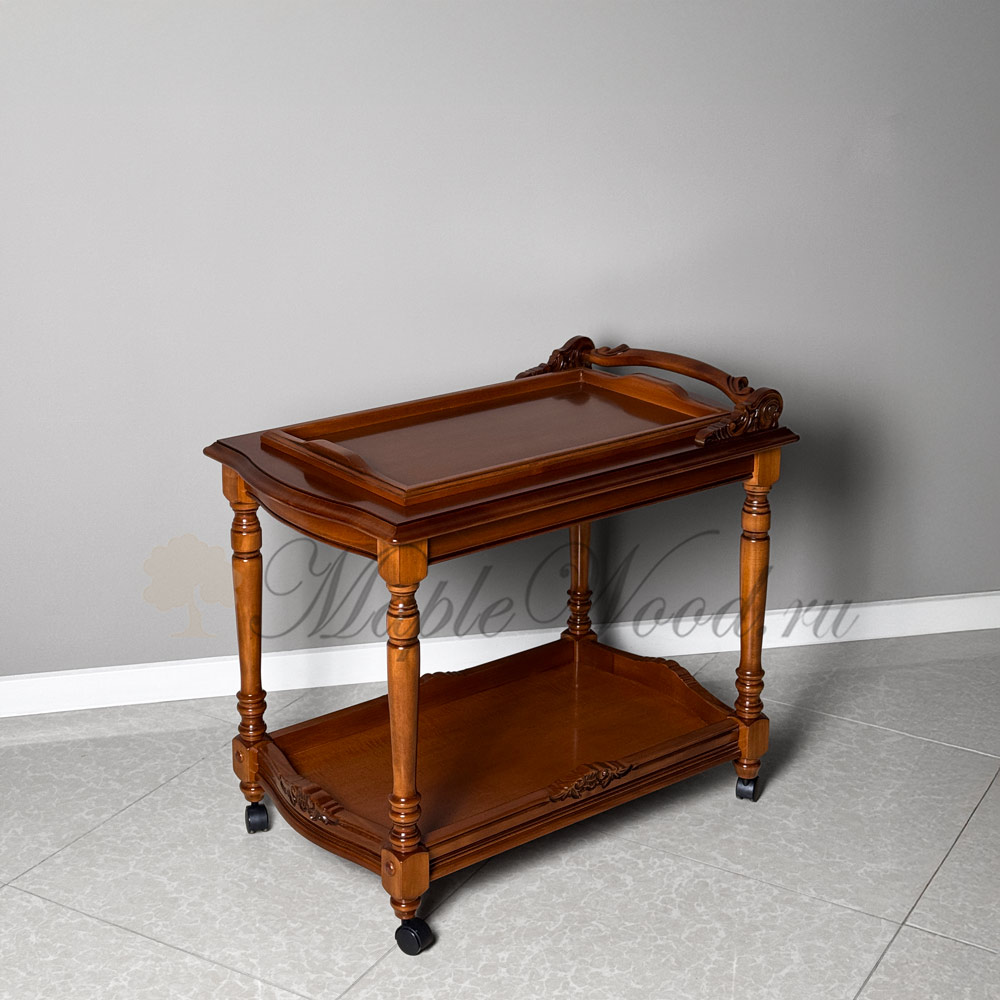 Столик выполнен в классическом стиле из натурального массива дерева и украшен искусной резьбой, которую румынские мастера выполняют вручную.