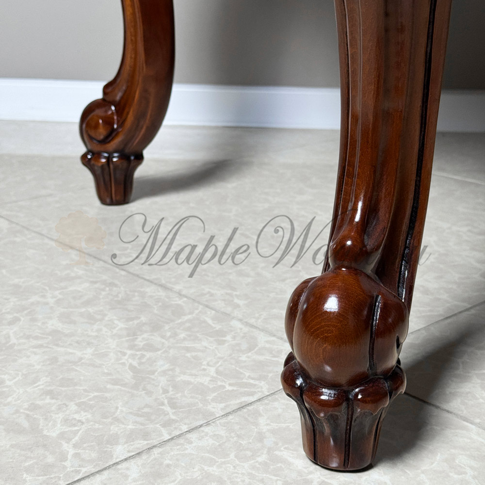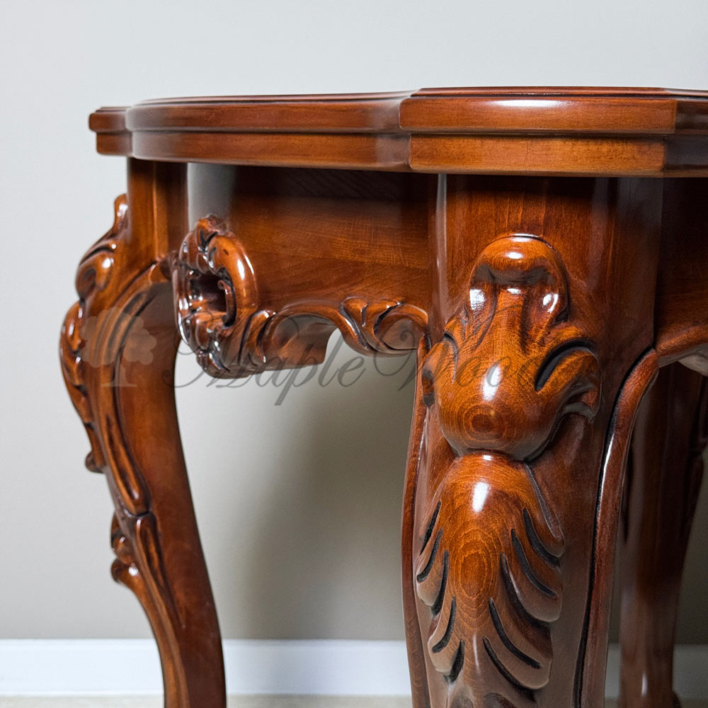 Он сочетает в себе оригинальную форму и богатую отделку с художественной резьбой, которая демонстрирует роскошь стола в каждой детали.
