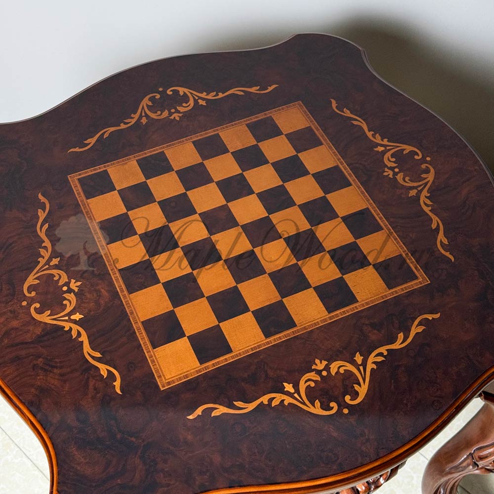 Шахматный стол из коллекции Клеопатра Люкс от фабрики Simex создан из массива дерева в лучших традициях стиля рококо.