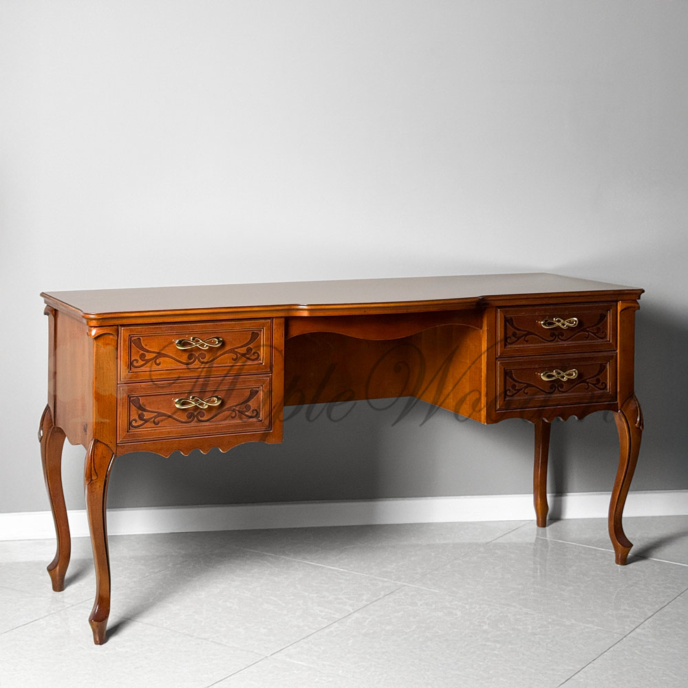 Туалетный стол на изогнутых ножках из коллекции Маттео от фабрики Мобекс | Mobex. выполнен в итальянском дизайне из натурального массива дерева в теплом оттенке черешня.