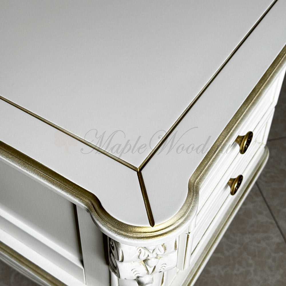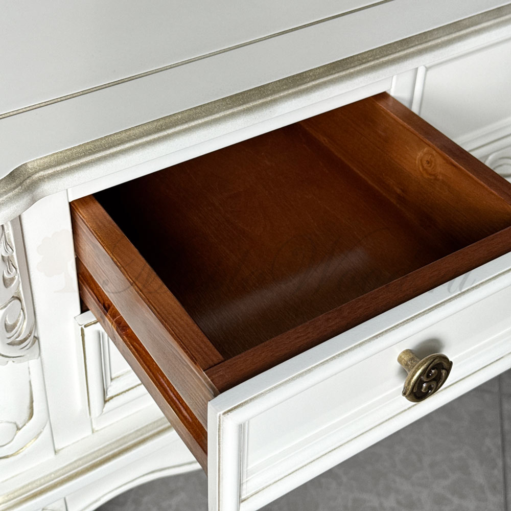 Туалетный столик из коллекции Палермо от фабрики Mонте Кристо Мобили | Monte Cristo Mobili имеет пять выдвижных ящиков, которые помогут упорядочить косметические принадлежности и аксессуары.