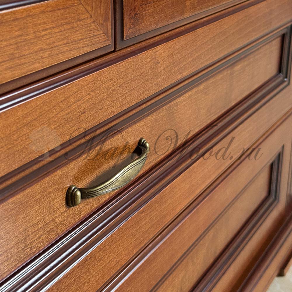 Книжный шкаф для гостиной и рабочего кабинета из коллекции Палермо от фабрики Тимбер выполнен из шпонированного МДФ с элементами из массива дерева и декорирован контрастной патиной, которая придаёт изделию элегантный и завершённый вид.