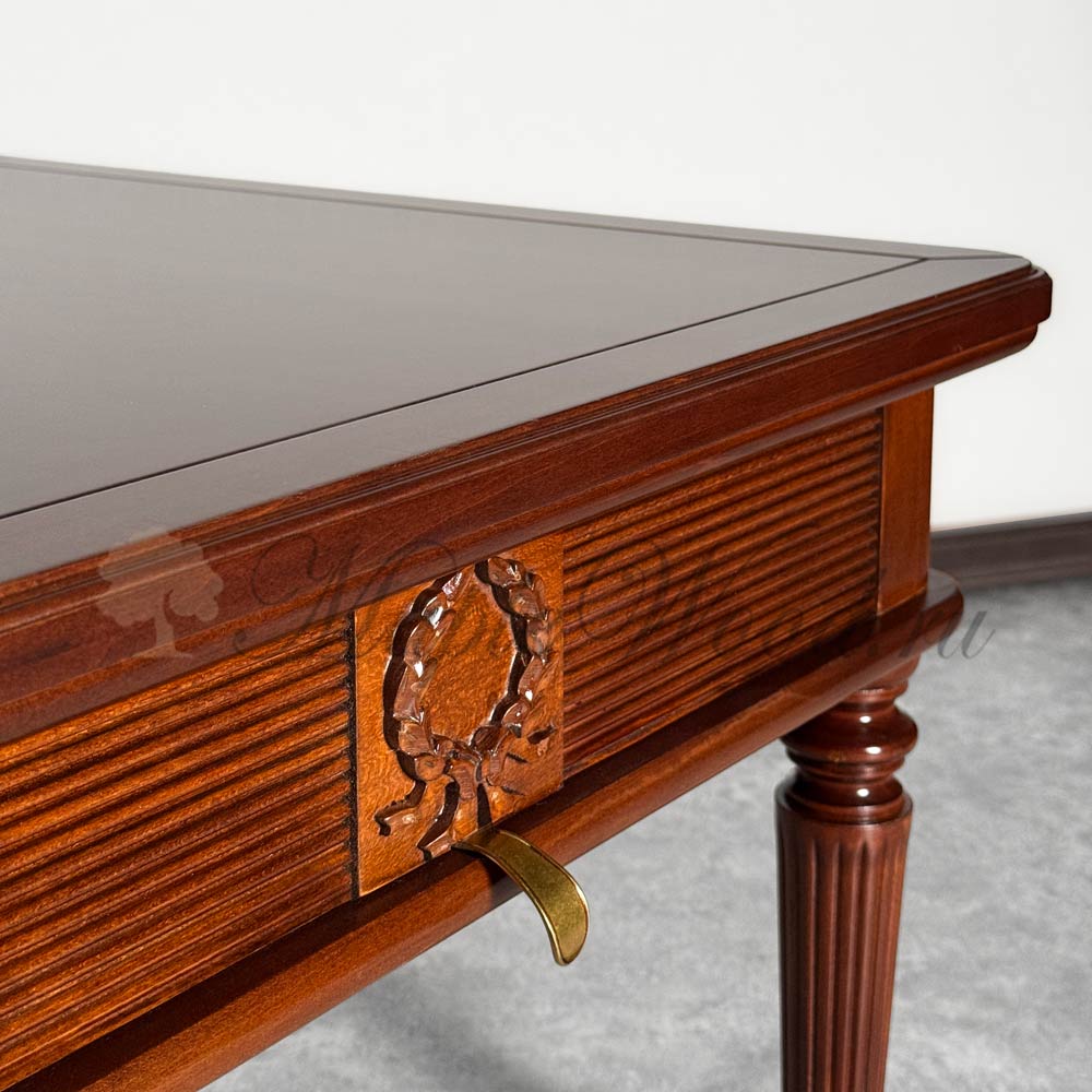 Квадратный столик для гостиной из коллекции Мария Сильва от фабрики Monte Cristo Mobili выполнен из массива дерева в стиле неоклассика.