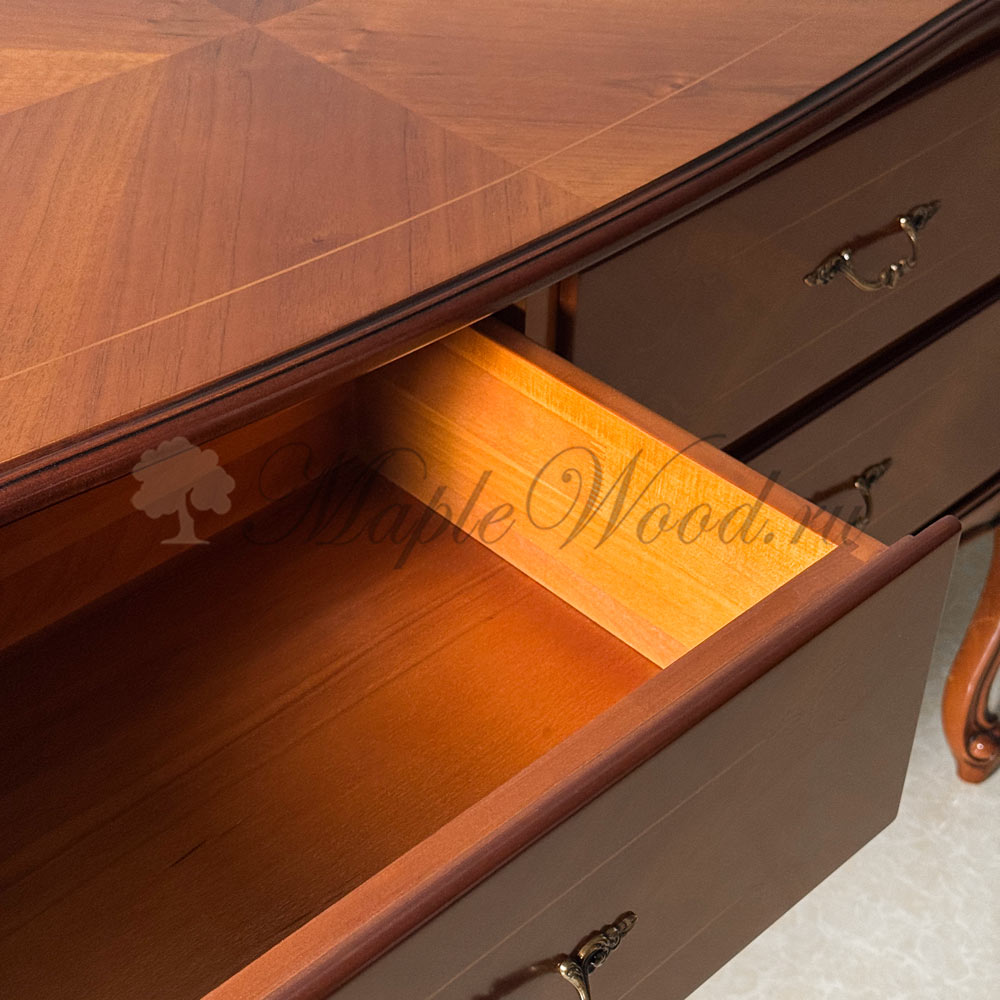Комод для спальни из коллекции Тарсия от фабрики Ardudana - модель на изогнутых ножках, которая подарит интерьеру лёгкость и аристократичный шарм.
