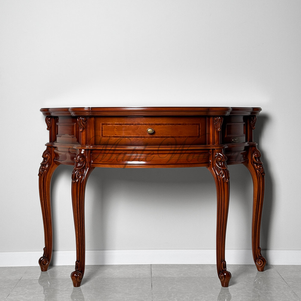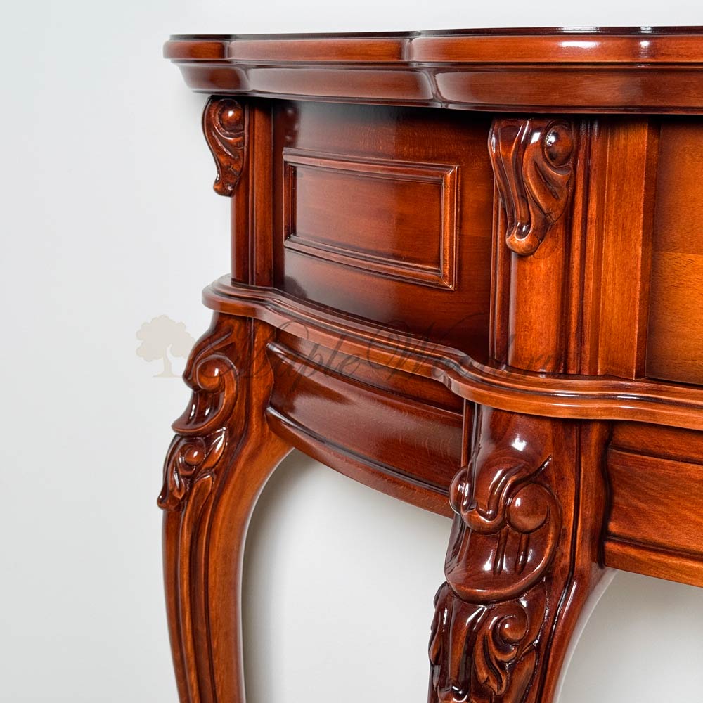 Консоль из натурального массива дерева от фабрики Simex из коллекции Фирензе отличается особой элегантностью и изяществом, благодаря своей округлой форме с изогнутыми фасадами и плавными линиями.