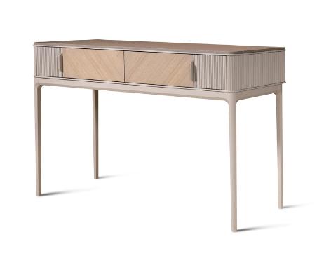 Туалетный стол из коллекции Модена от фабрики Тимбер оснащен двумя выдвижными ящиками с механизмом плавного закрывания.